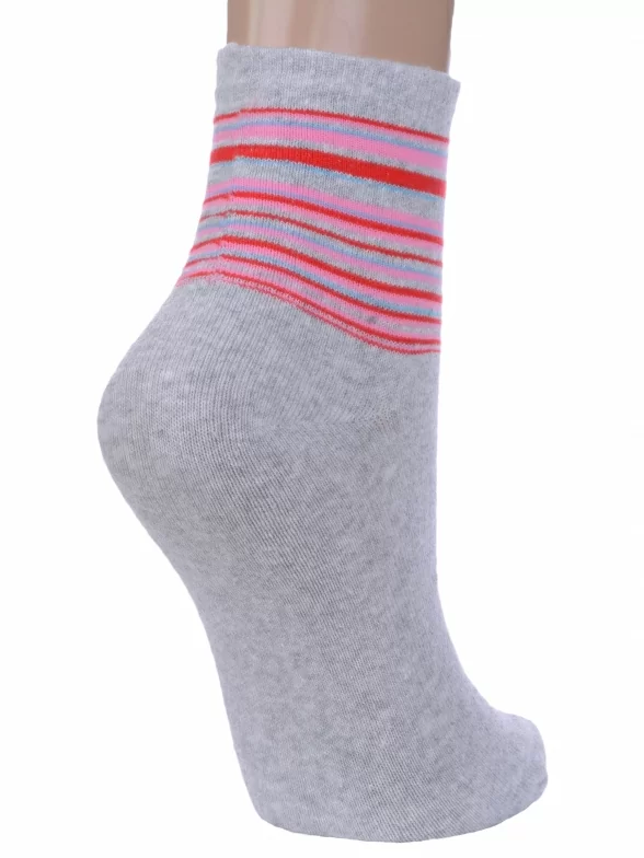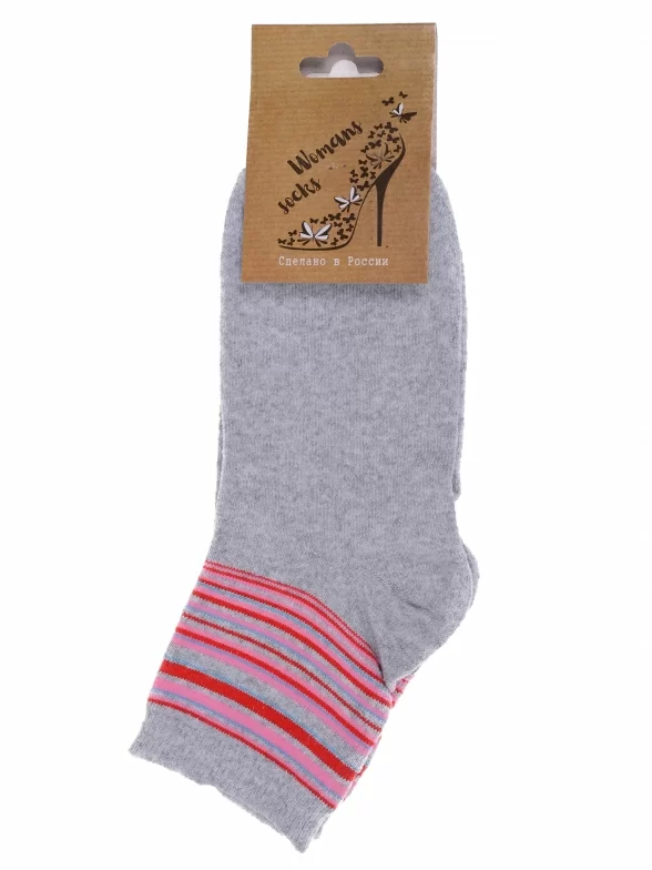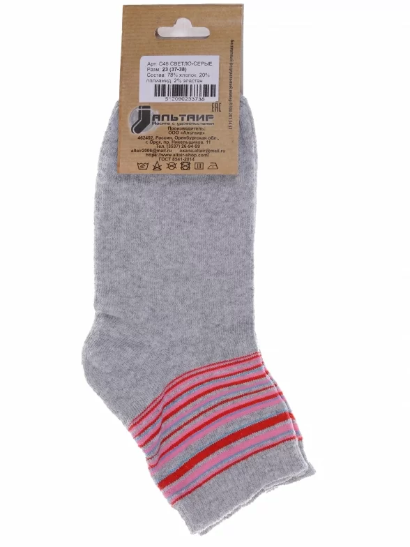 Круглогодичные укороченные женские носки, цвет светло-серый, классические, шов обычный (не бесшовные), принт (рисунок): полоски, с узором, состав: 78% хлопок, 20% полиамид, 2% эластан, арт. С46. Производитель «ООО Альтаир, г. Орск, Оренбургская обл, Россия» под брендом «Альтаир».