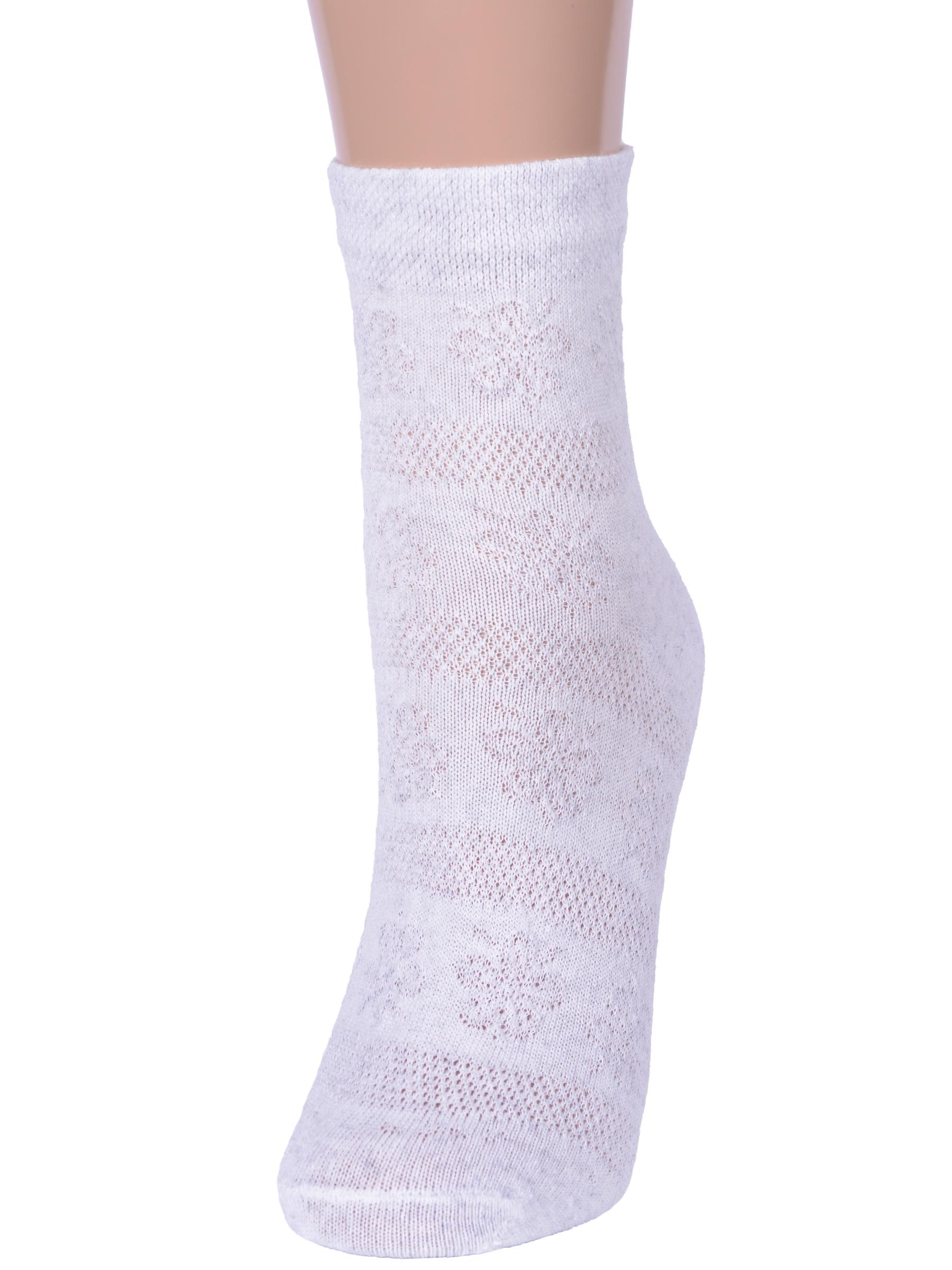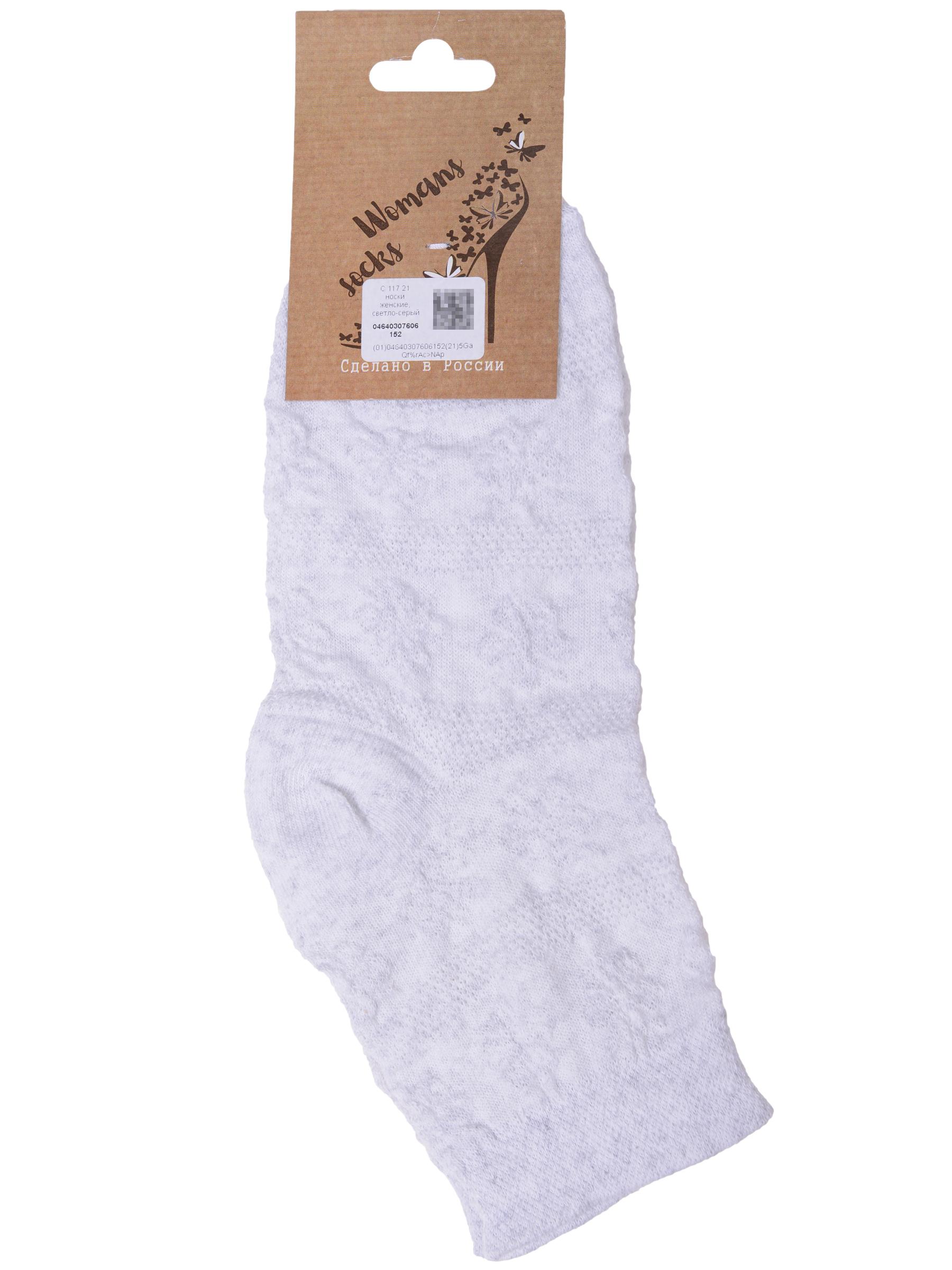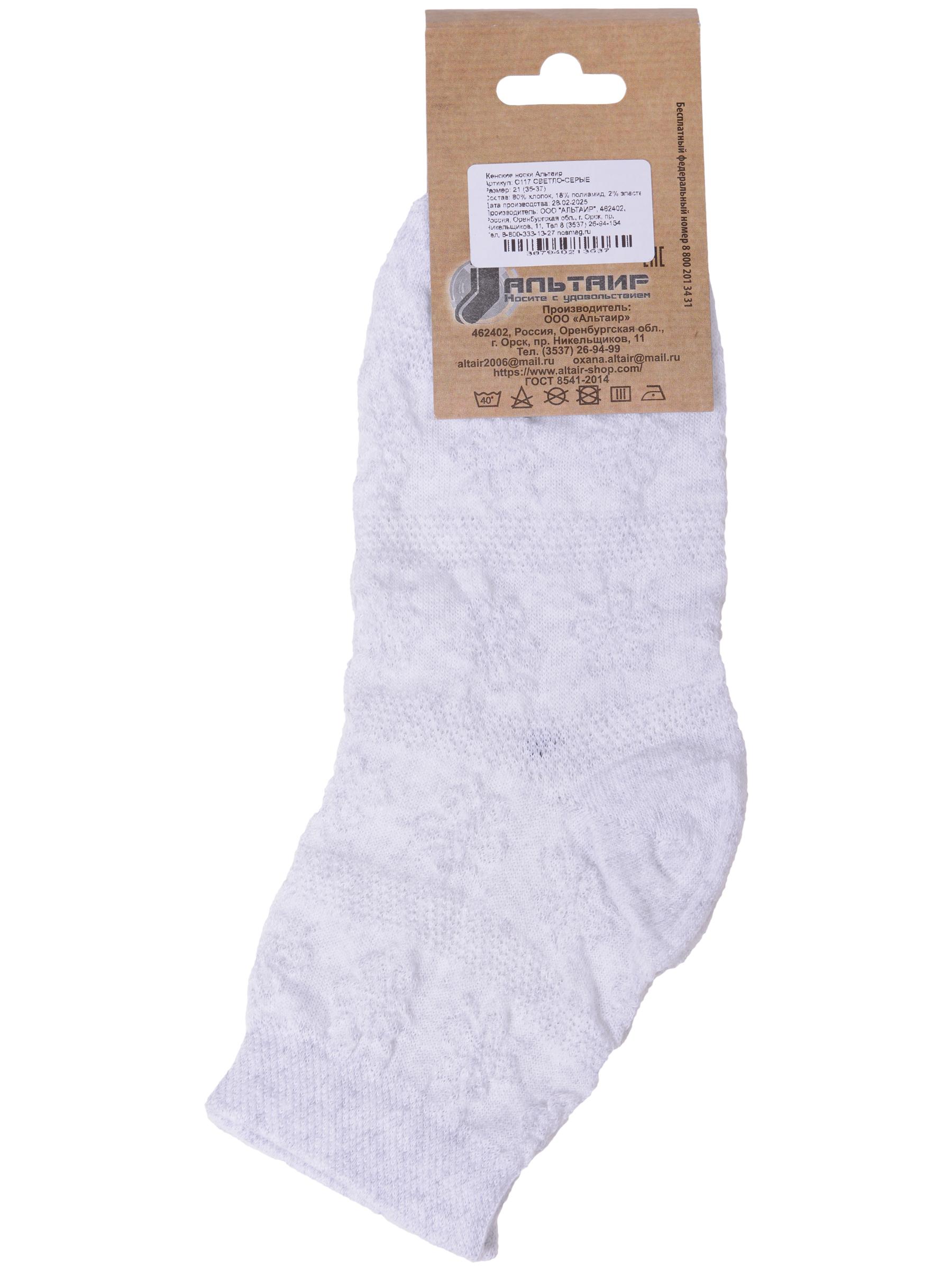 Летние укороченные женские носки, цвет светло-серый, в сеточку, ажурные, шов обычный (не бесшовные), принт (рисунок): цветы / растения, с узором, однотонный, состав: 80% хлопок, 18% полиамид, 2% эластан, арт. С117. Производитель «ООО Альтаир, г. Орск, Оренбургская обл, Россия» под брендом «Альтаир».
