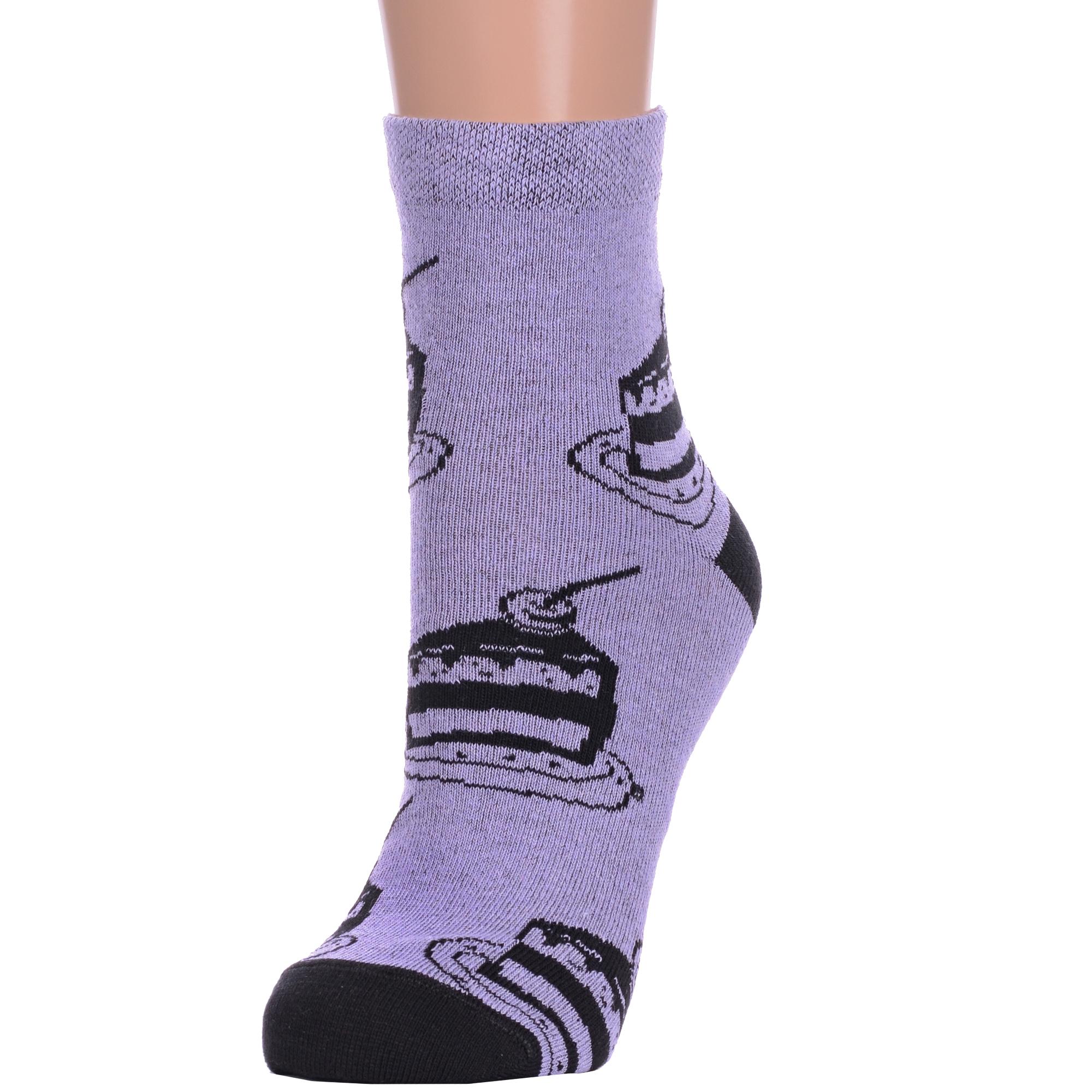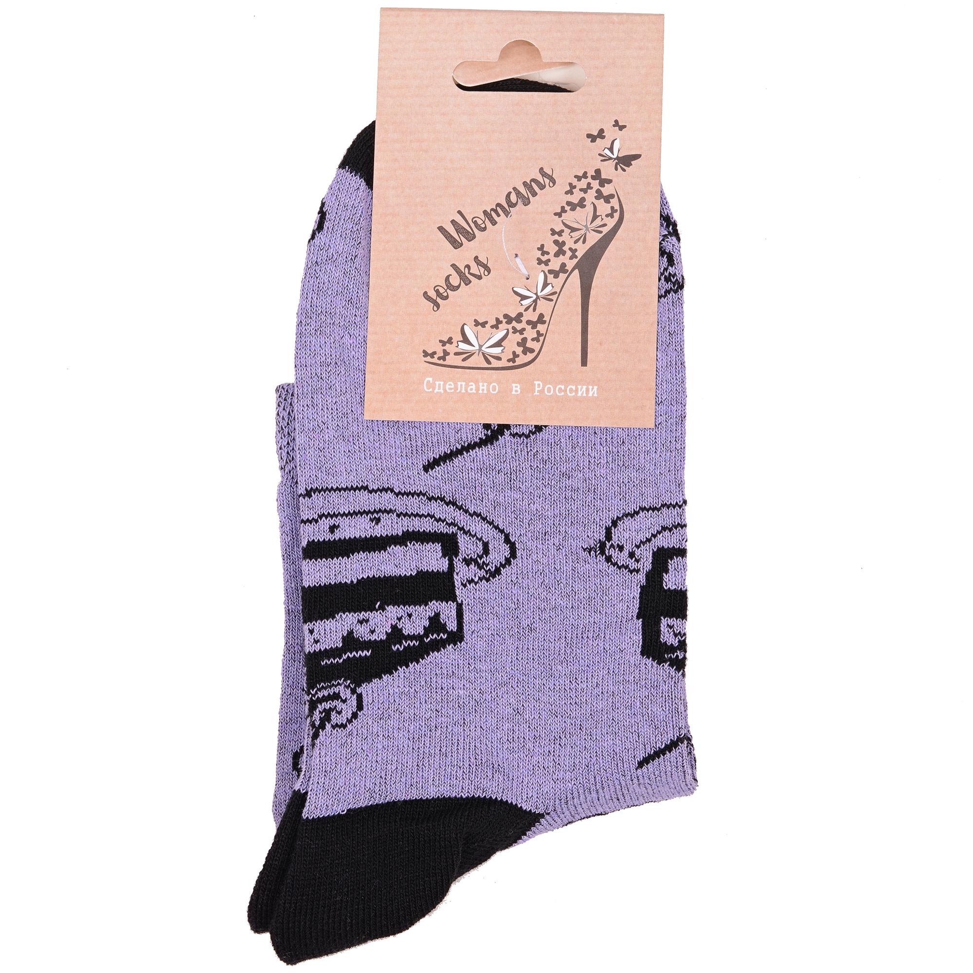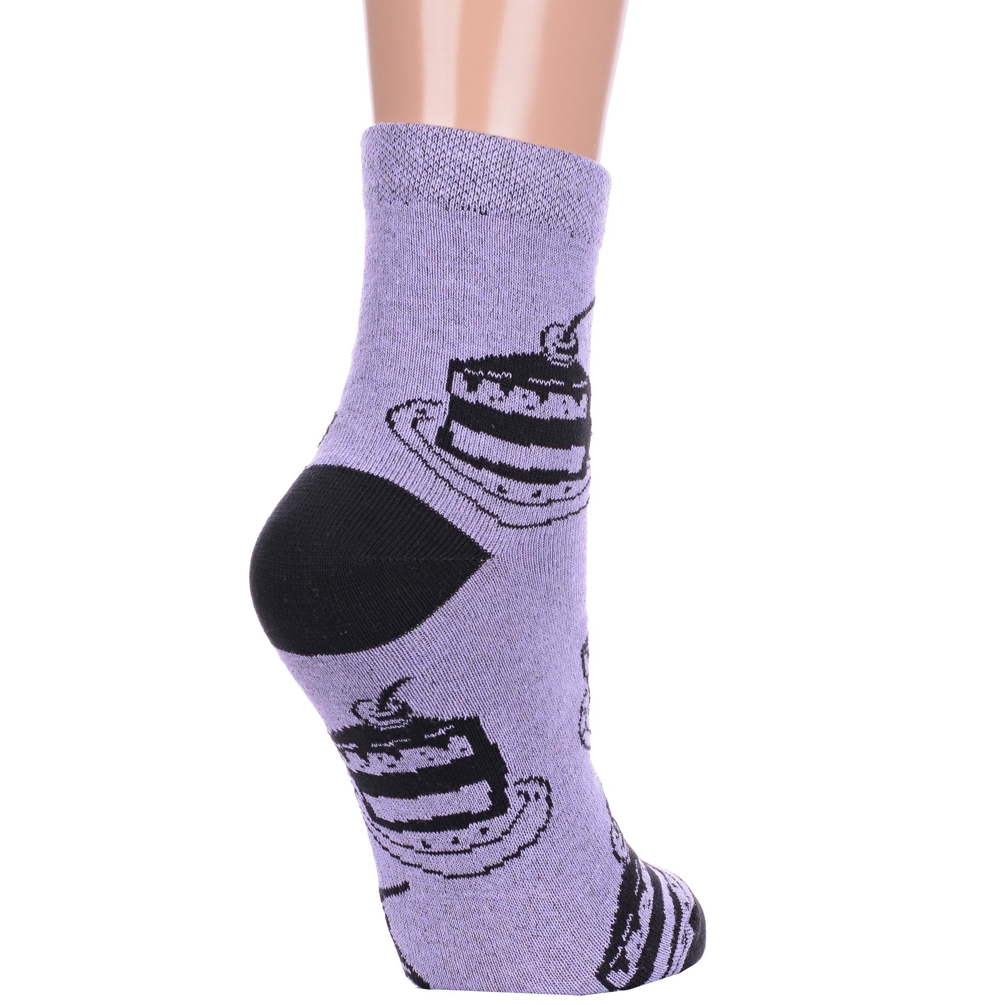 Круглогодичные укороченные женские носки, цвет сиреневый, повседневные, шов обычный (не бесшовные), принт (рисунок): контрастные пятка / мысок / резинка, еда и напитки, с узором, состав: 78% хлопок, 20% полиамид, 2% эластан, арт. А215. Производитель «ООО Альтаир, г. Орск, Оренбургская обл, Россия» под брендом «Альтаир».