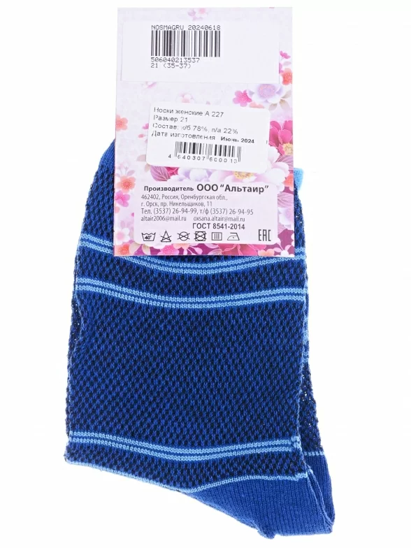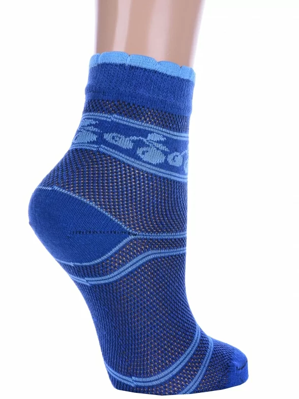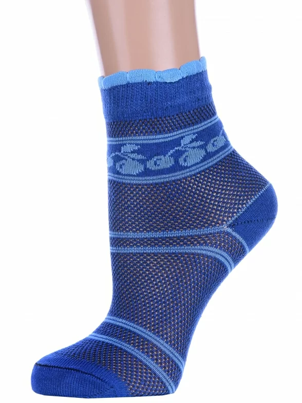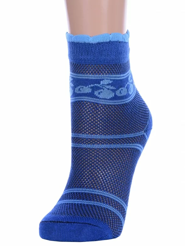 Летние укороченные женские носки, цвет синий, повседневные, в сеточку, ажурные, шов обычный (не бесшовные), принт (рисунок): овощи / фрукты / ягоды, с узором, состав: 78% хлопок, 22% полиамид, арт. А227. Производитель «ООО Альтаир, г. Орск, Оренбургская обл, Россия» под брендом «Альтаир».