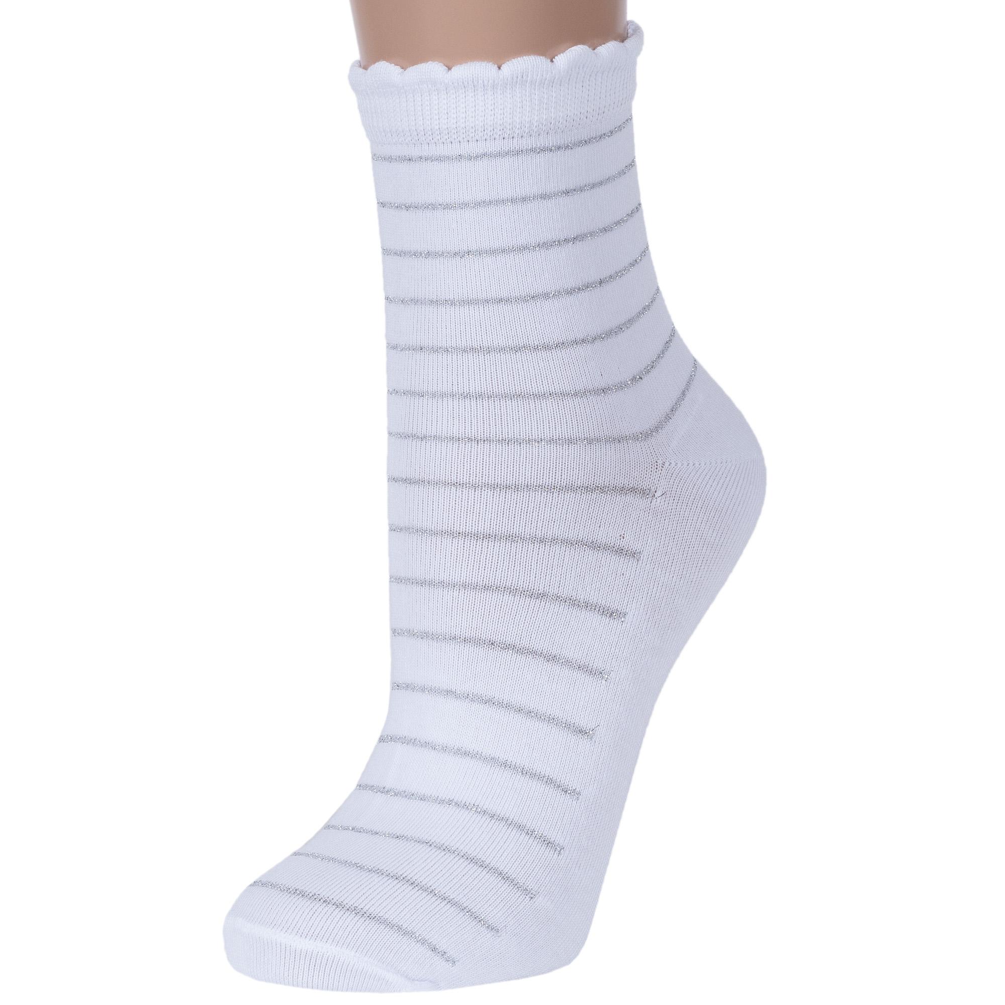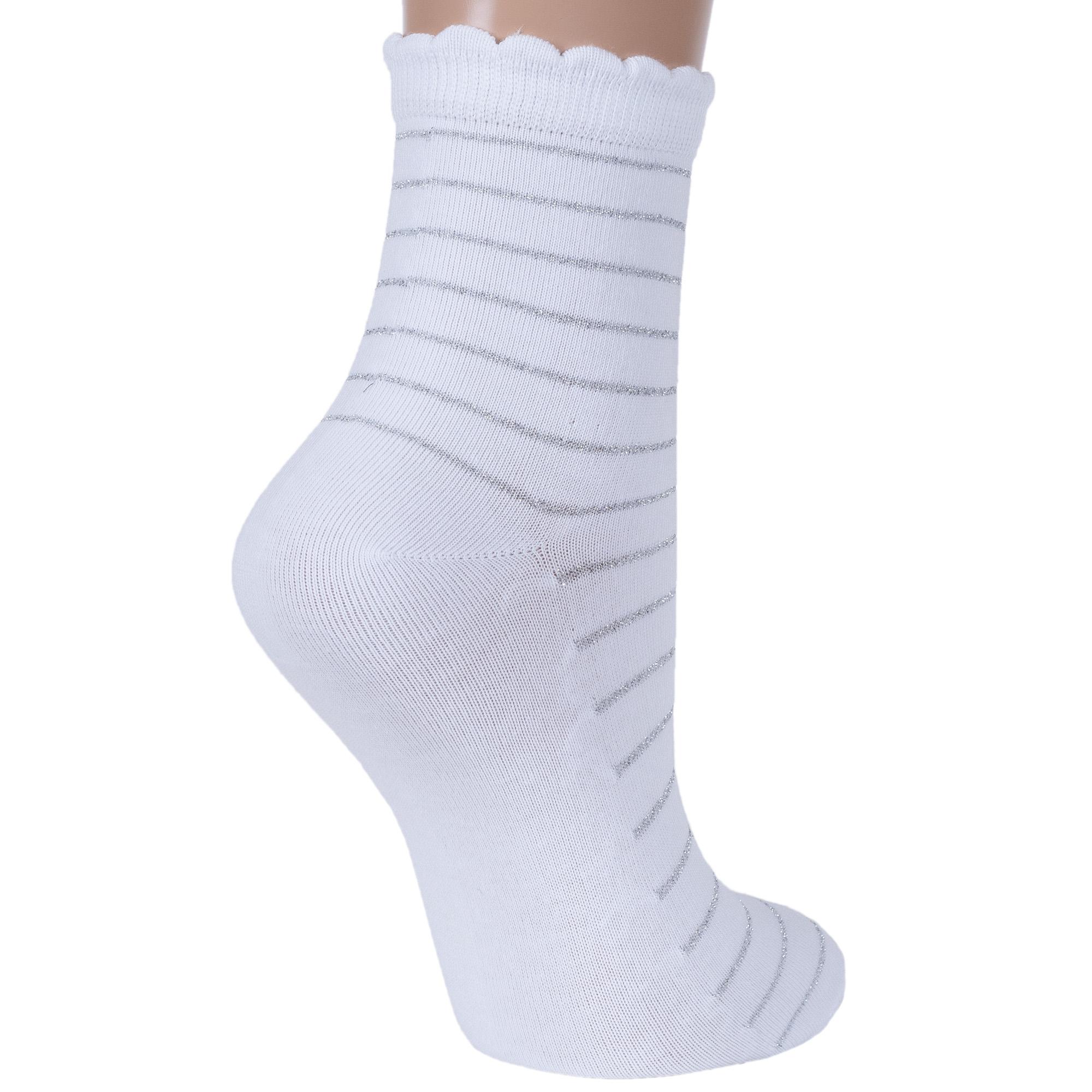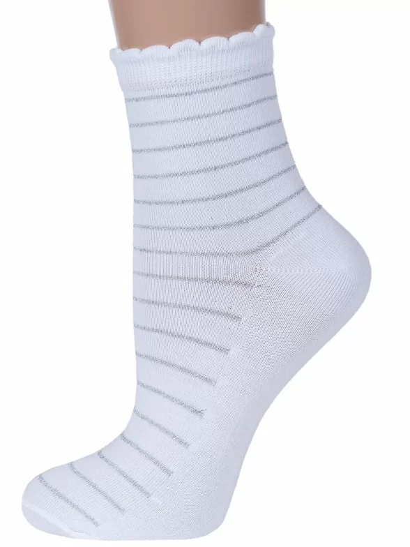 Круглогодичные укороченные женские носки, цвет белый, классические, возможно бесшовные, принт (рисунок): полоски, блеск люрекса, с узором, состав: 63% хлопок, 29% полиамид, 5% эластан, 3% люрекс, арт. С-1412. Производитель «КРАСНАЯ ВЕТКА» Россия под брендом «Красная ветка».