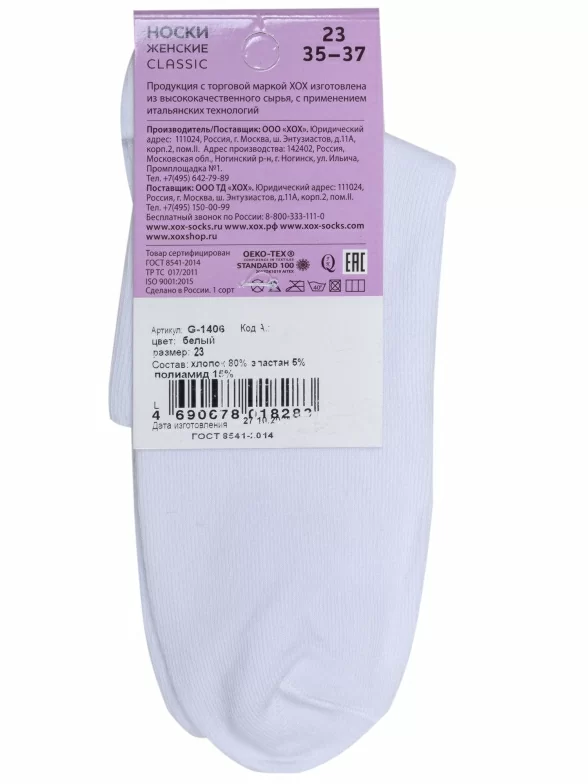 Женские носки без резинки ХОХ, G-1406, БЕЛЫЕ