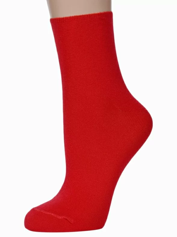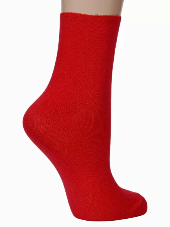 Женские носки, сделанные по итальянской технологии. Связаны на российской фабрике ХОХ. Модель отличается кетельным швом и сделана без резинки. Носки полностью эластичны и не передавливают кожу. Однотонная модель красного цвета без рисунков и узоров. После многочисленных стирок сохраняют форму и яркость цвета.