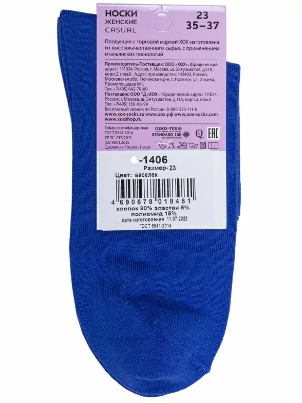Женские носки без резинки ХОХ, G-1406, ВАСИЛЬКОВЫЕ