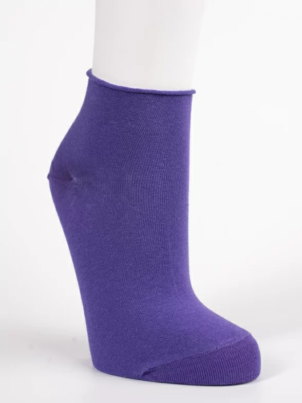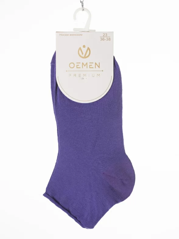 Круглогодичные короткие женские носки, цвет фиолетовый, медицинские, без резинки, шов обычный (не бесшовные), принт (рисунок): однотонный, без рисунков / узоров, состав: 80% хлопок, 17% полиамид, 3% лайкра, арт. PW881-12. Производитель «Oemen» Китай под брендом «Oemen».