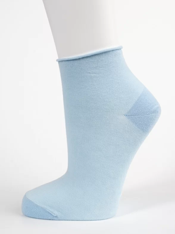 Круглогодичные короткие женские носки, цвет голубой, медицинские, без резинки, шов обычный (не бесшовные), принт (рисунок): однотонный, без рисунков / узоров, состав: 80% хлопок, 17% полиамид, 3% лайкра, арт. PW881-6. Производитель «Oemen» Китай под брендом «Oemen».