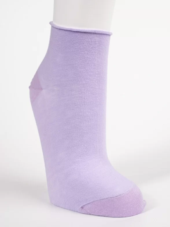 Круглогодичные короткие женские носки, цвет сиреневый, медицинские, без резинки, шов обычный (не бесшовные), принт (рисунок): однотонный, без рисунков / узоров, состав: 80% хлопок, 17% полиамид, 3% лайкра, арт. PW881-5. Производитель «Oemen» Китай под брендом «Oemen».