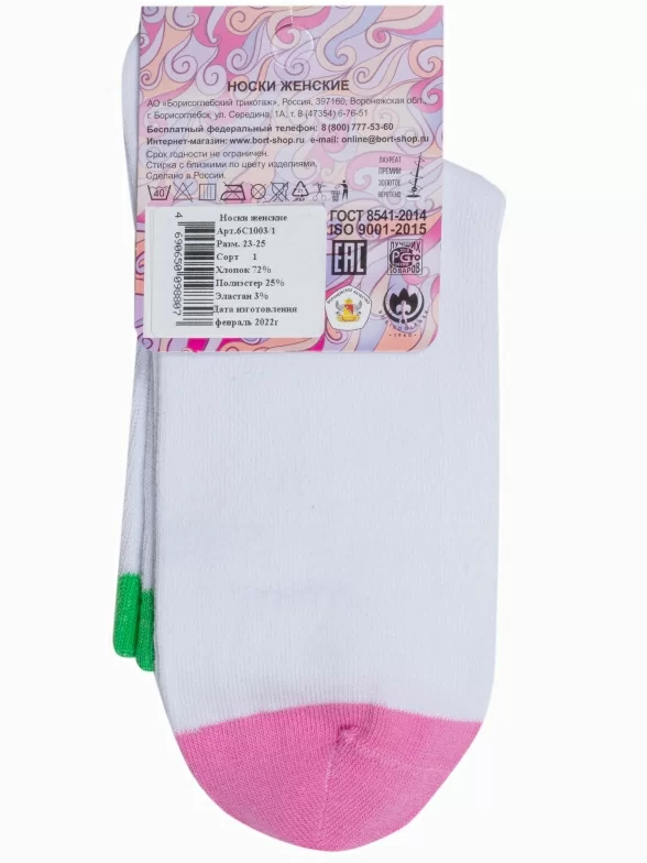 Женские носки "Борисоглебский трикотаж", 6С1003, №1 БЕЛЫЕ, рис. 01