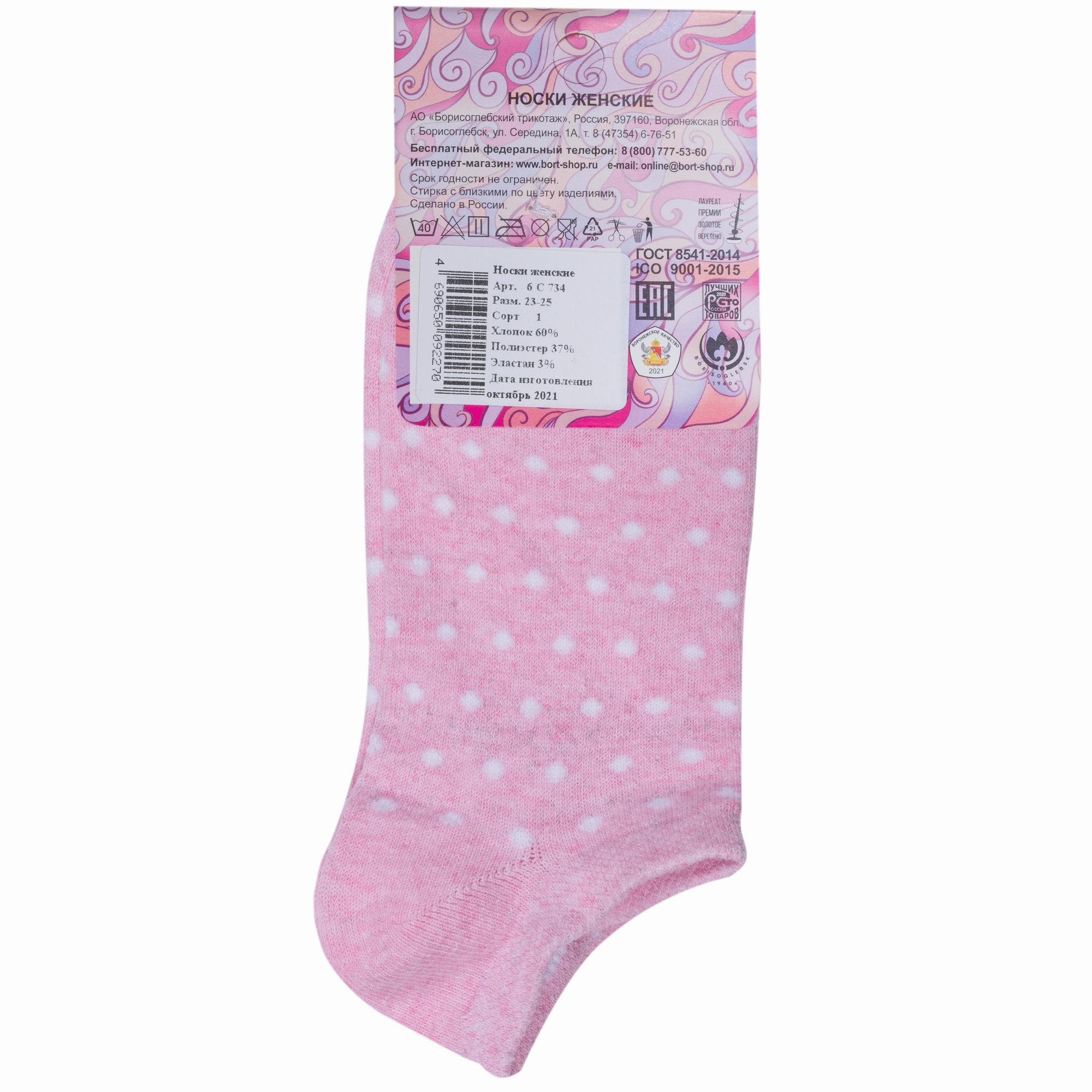 Круглогодичные ультракороткие женские носки, цвет розовый, классические, шов кеттельный (бесшовная технология), принт (рисунок): мелкий принт, горох / точка, с узором, состав: 60% хлопок, 37% полиэстер, 3% эластан, арт. 6С734. Производитель «АО Борисоглебский трикотаж, Воронежская обл, Россия» под брендом «Борисоглебский трикотаж».