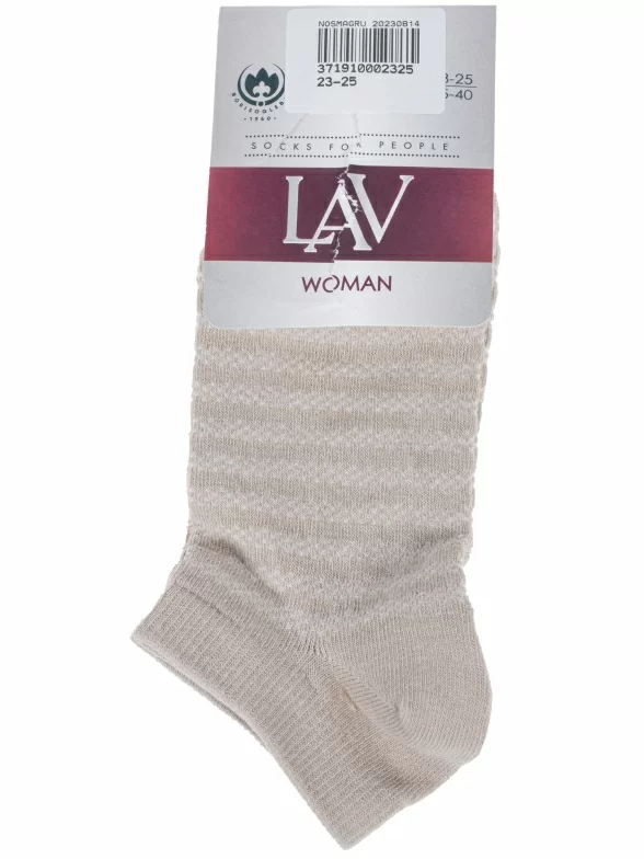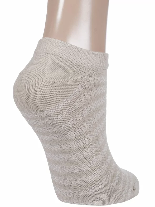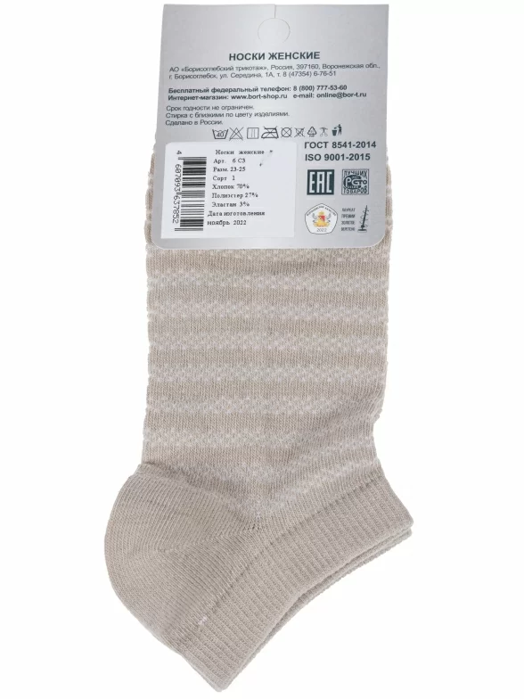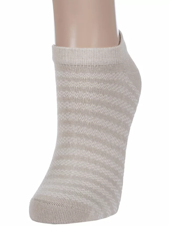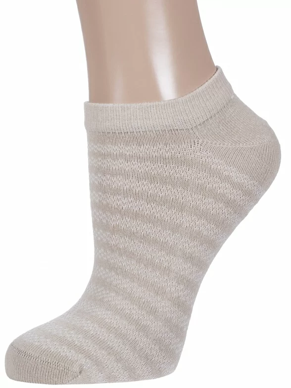 Летние ультракороткие женские носки, цвет бежевый, ажурные, классические, возможно бесшовные, принт (рисунок): полоски, с узором, состав: 70% хлопок, 27% полиэстер, 3% эластан, арт. 6С3. Производитель «АО Борисоглебский трикотаж, Воронежская обл, Россия» под брендом «Борисоглебский трикотаж».