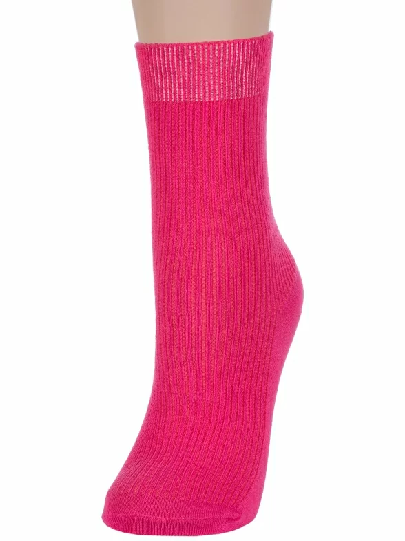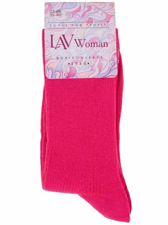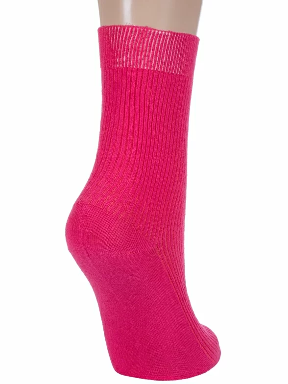 Круглогодичные средней длины женские носки, цвет фуксия, классические, шов обычный (не бесшовные), принт (рисунок): в рубчик, однотонный, без рисунков/узоров, состав: 76% хлопок, 21% полиэстер, 3% эластан, арт. 6С263. Производитель «АО Борисоглебский трикотаж, Воронежская обл, Россия» под брендом «Борисоглебский трикотаж».