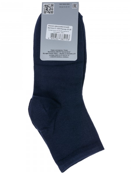 Круглогодичные укороченные женские носки, цвет джинс, классические, возможно бесшовные, принт (рисунок): однотонный, без рисунков/узоров, состав: 76% хлопок, 22% полиэстер, 2% эластан, арт. 19С1232. Производитель «Брестский чулочный комбинат ОАО, Беларусь» под брендом «Брестские (бчк)».
