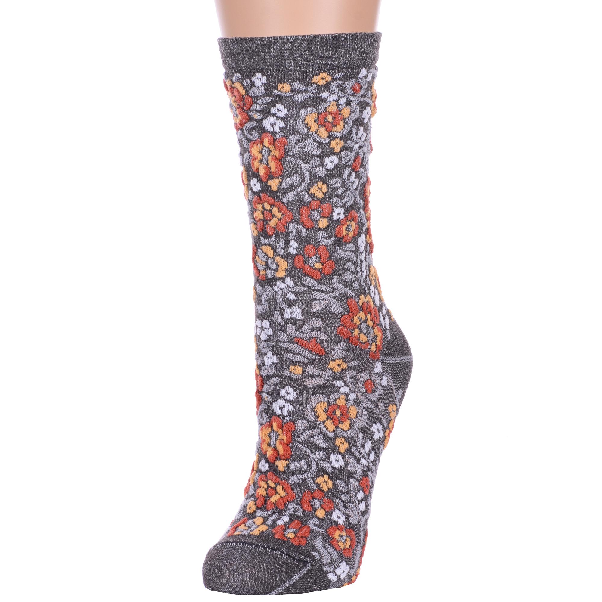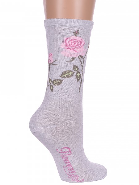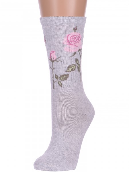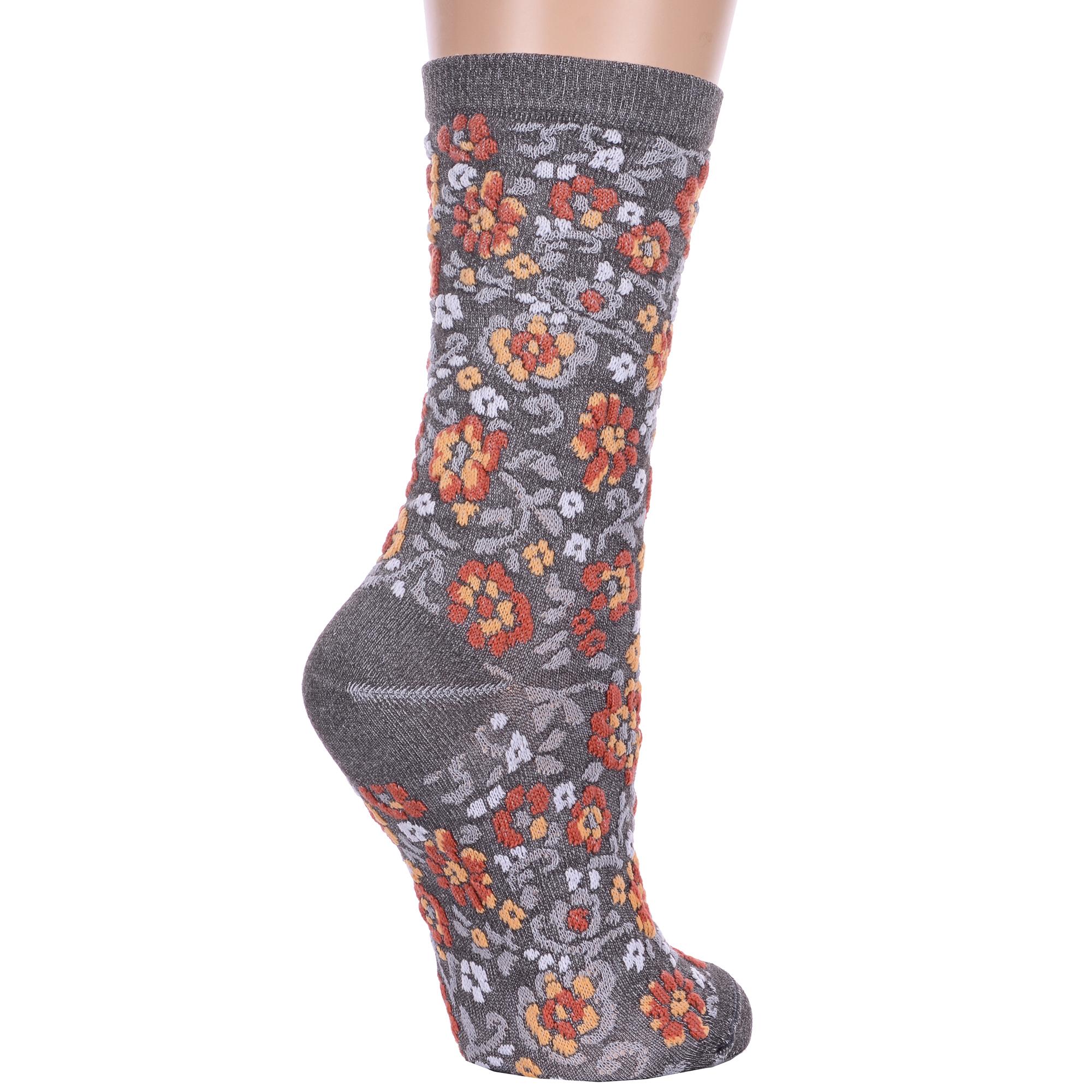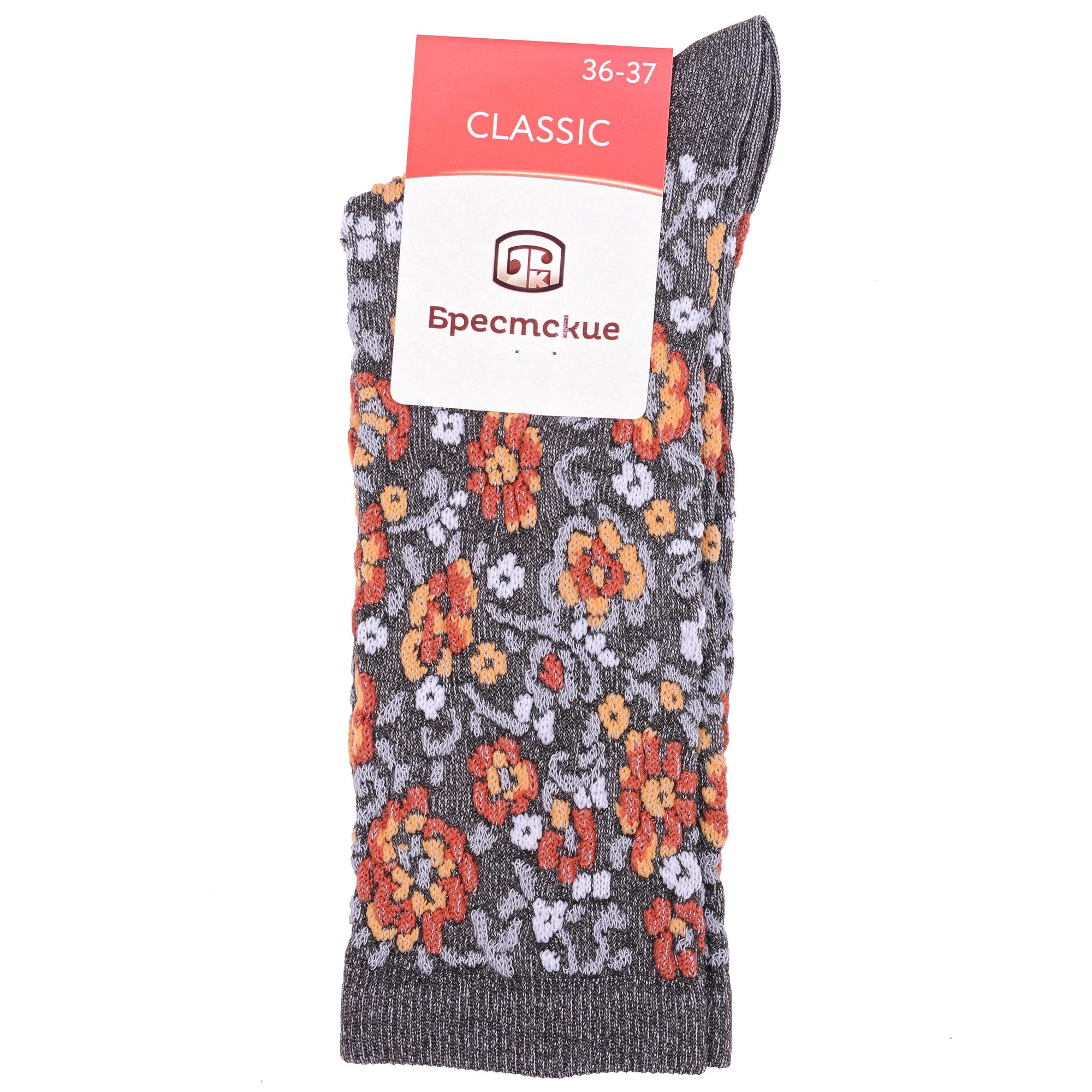 Круглогодичные средней длины женские носки, цвет темно-серый, повседневные, ажурные, возможно бесшовные, принт (рисунок): цветы/растения, с узором, состав: 68% хлопок, 30% полиамид, 2% эластан, арт. 20С1140. Производитель «Брестский чулочный комбинат ОАО, Беларусь» под брендом «Брестские (бчк)».