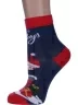 Круглогодичные укороченные женские носки, цвет синий, повседневные, шов плоский, принт (рисунок): новый год, состав: 72% хлопок, 26% полиамид, 2% эластан, арт. 20С1137. Производитель «Брестский чулочный комбинат ОАО, Беларусь» под брендом «Брестские (бчк)».
