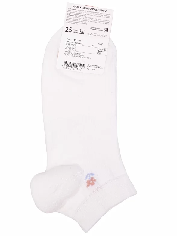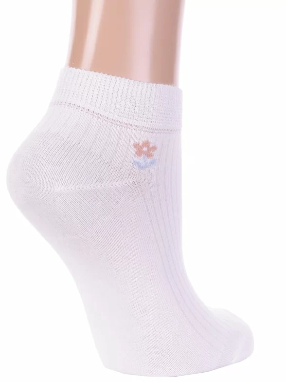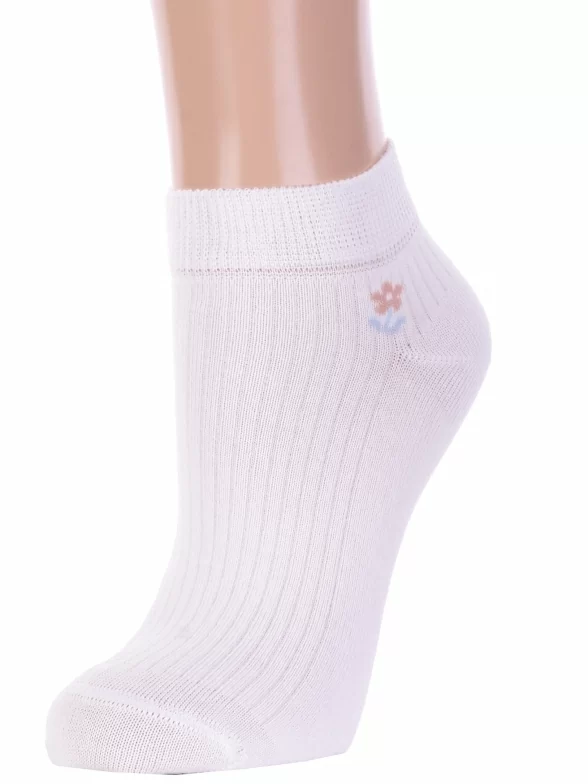 Межсезонные или летние короткие женские носки, цвет белый, повседневные, шов кеттельный (бесшовная технология), принт (рисунок): в рубчик, однотонный, небольшой рисунок, состав: 66% хлопок, 32% полиэстер, 2% эластан, арт. 14с1101. Производитель «Брестский чулочный комбинат ОАО, Беларусь» под брендом «Брестские (бчк)».