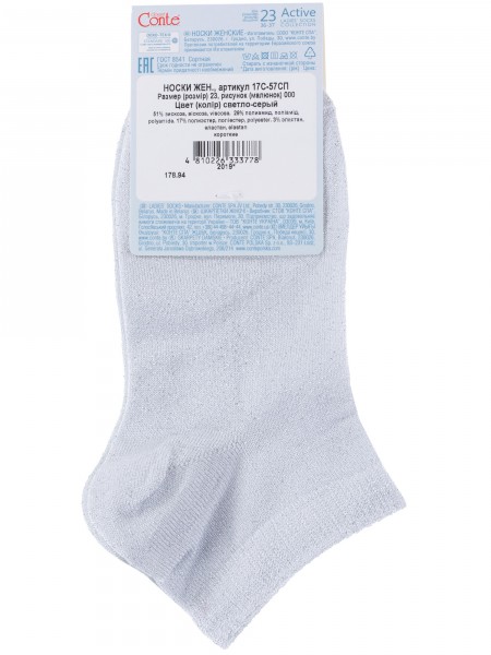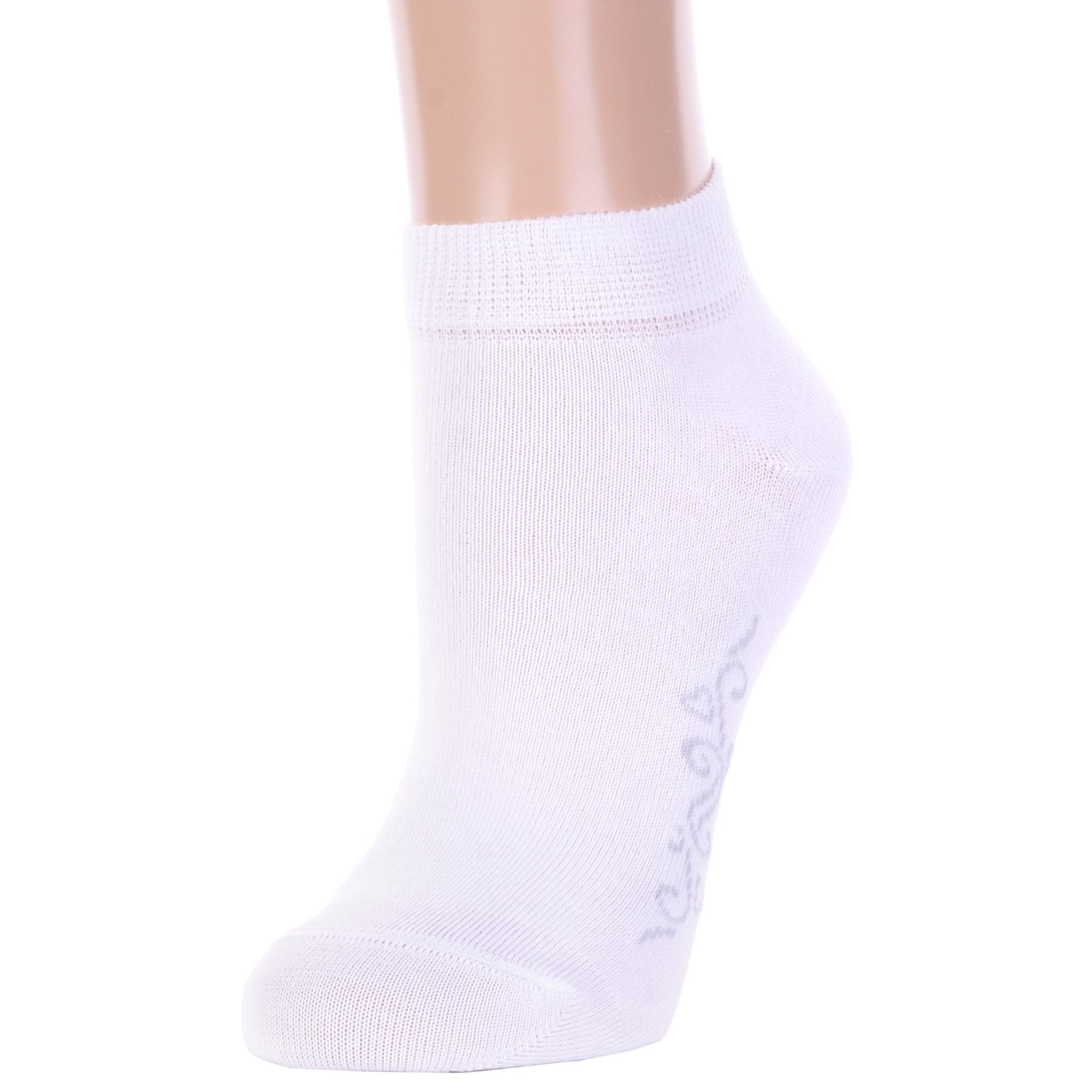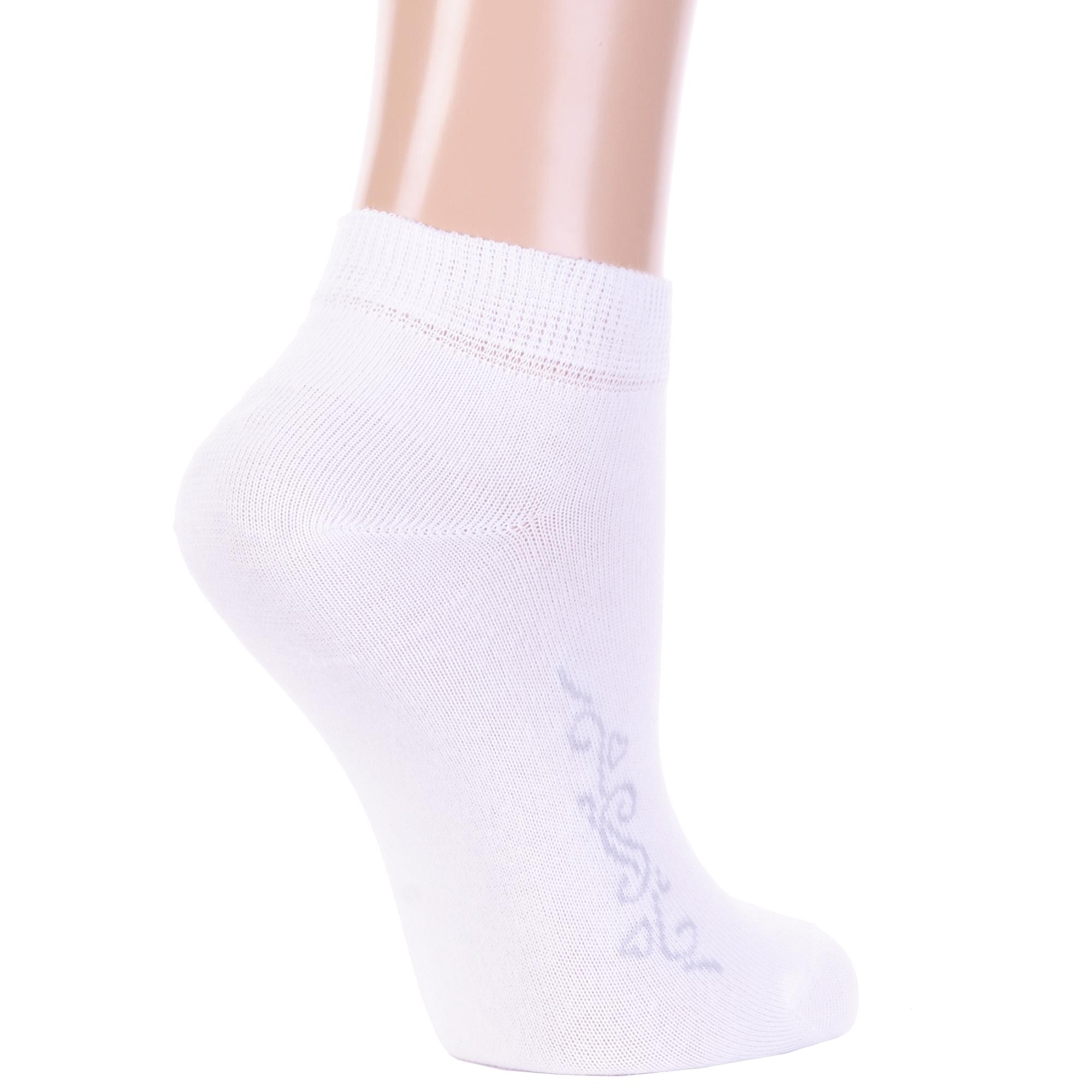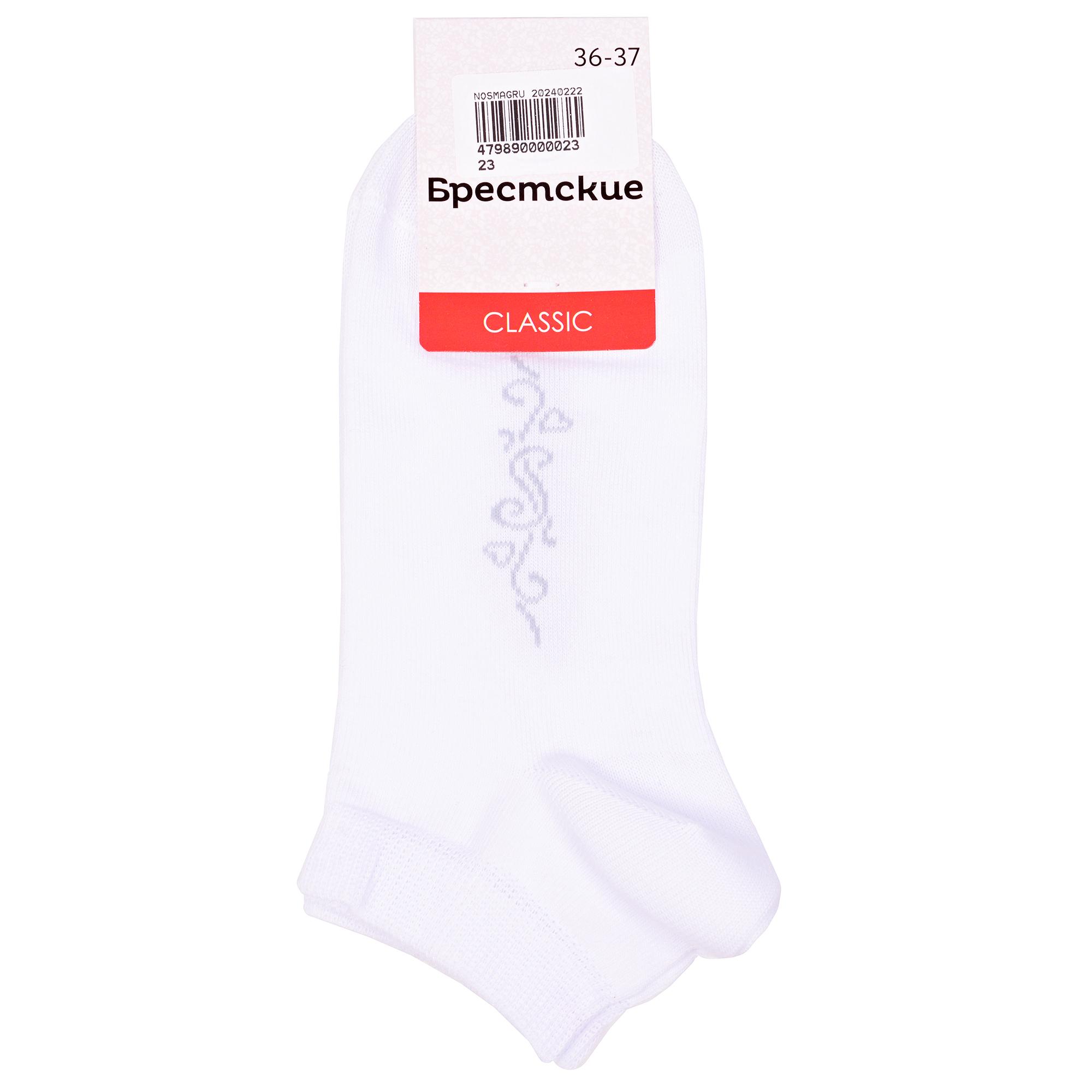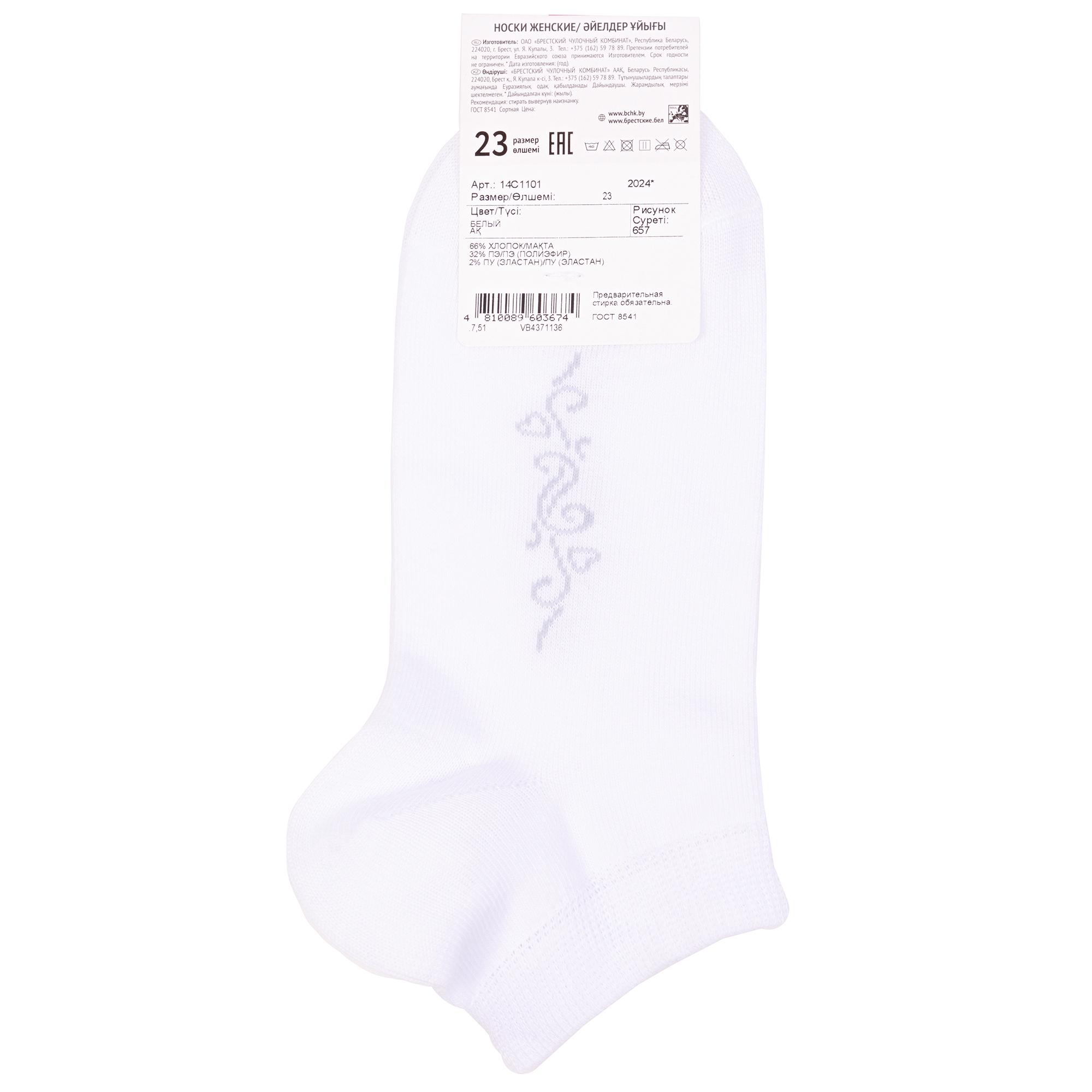 Межсезонные или летние короткие женские носки, цвет белый, повседневные, шов кеттельный (бесшовная технология), принт (рисунок): однотонный, небольшой рисунок, состав: 66% хлопок, 32% полиэстер, 2% эластан, арт. 14с1101. Производитель «Брестский чулочный комбинат ОАО, Беларусь» под брендом «Брестские (бчк)».
