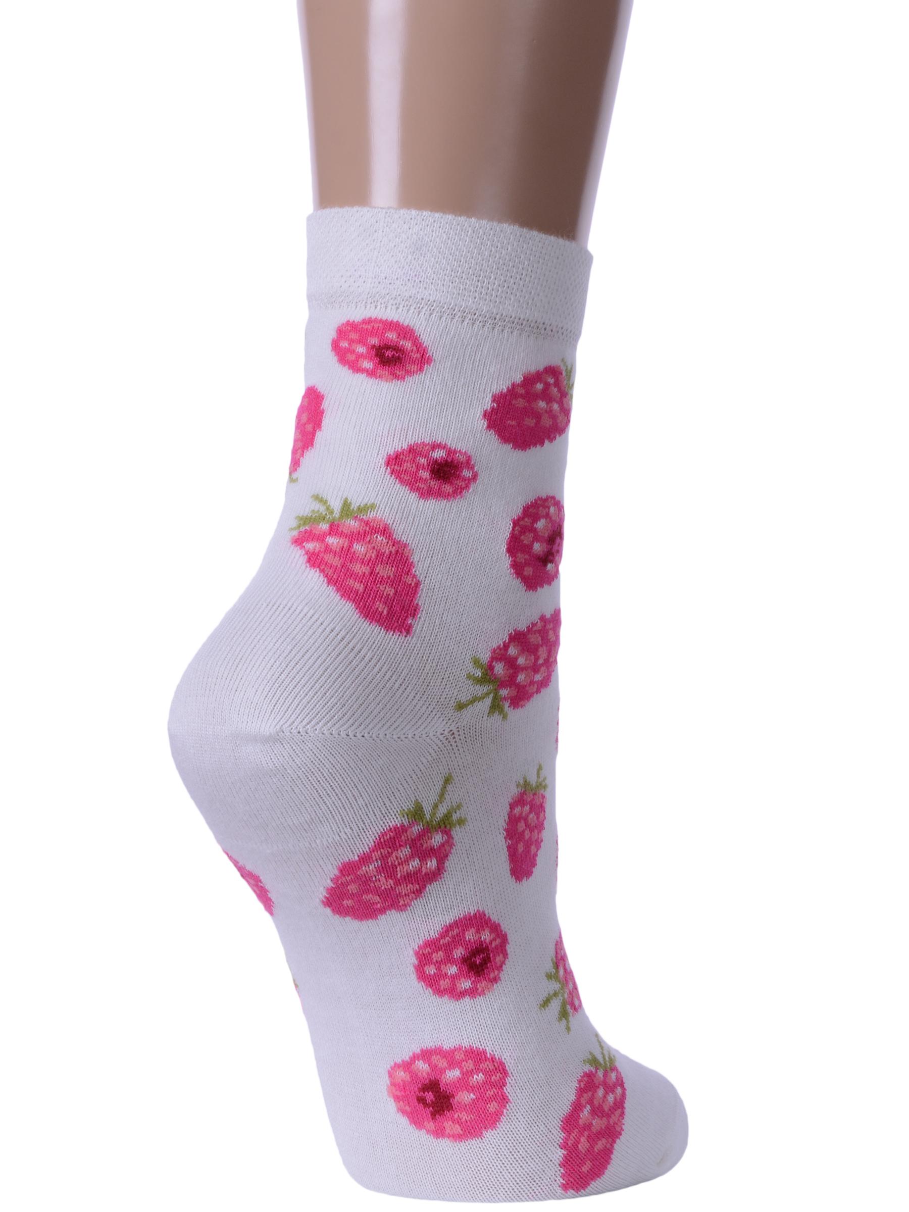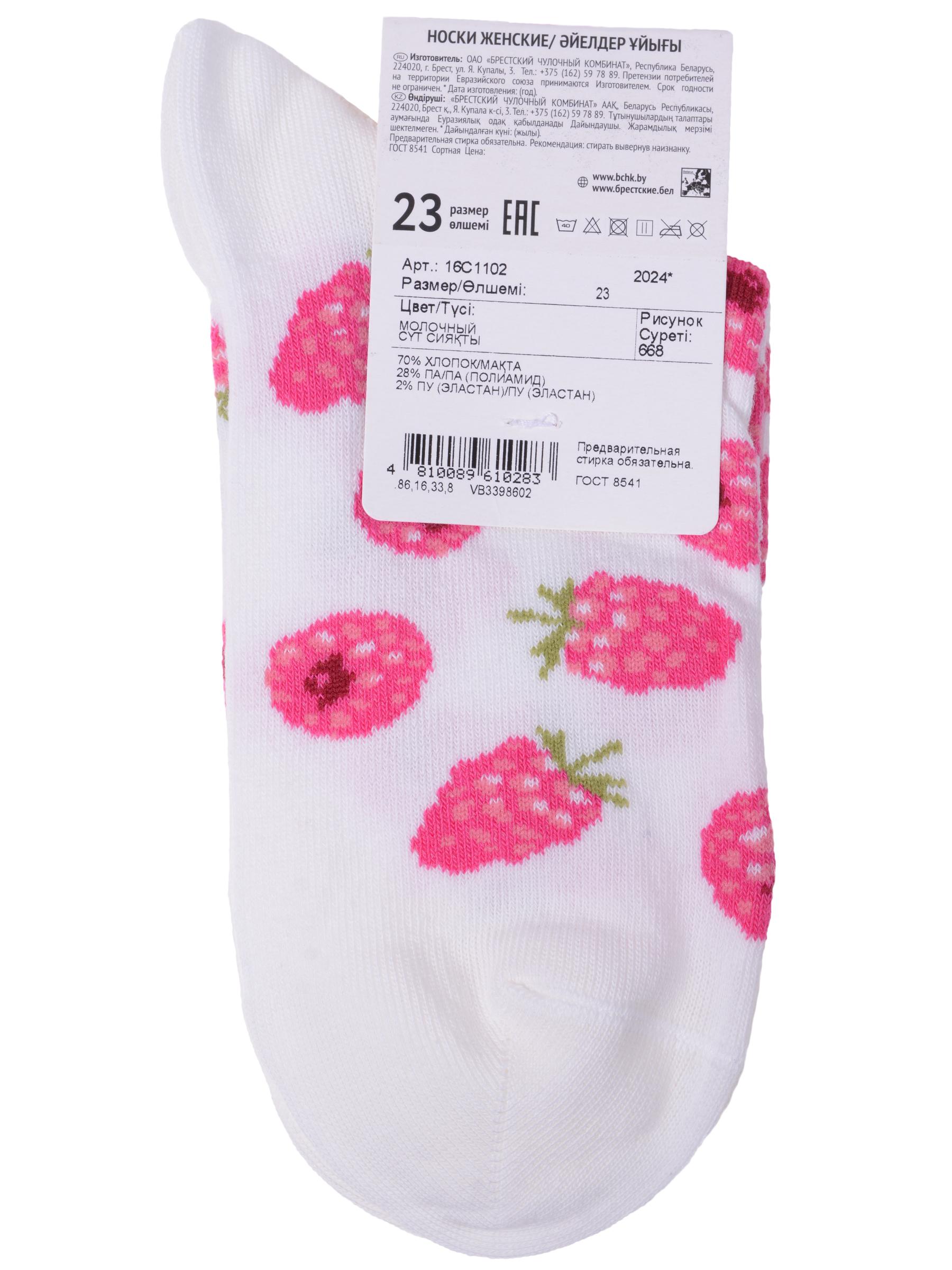 Круглогодичные укороченные женские носки, цвет бежевый, шов плоский, принт (рисунок): фрукты / овощи / ягоды, состав: 70% хлопок, 28% полиамид, 2% эластан, арт. 16с1102. Производитель «Брестский чулочный комбинат ОАО, Беларусь» под брендом «Брестские (бчк)».
