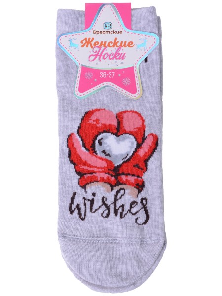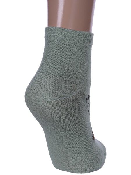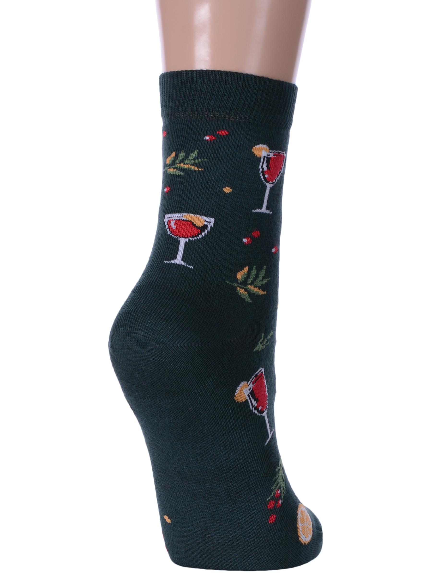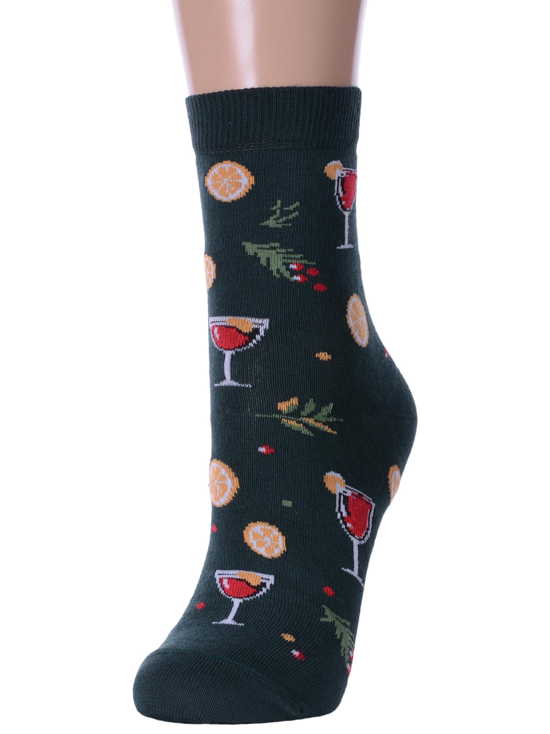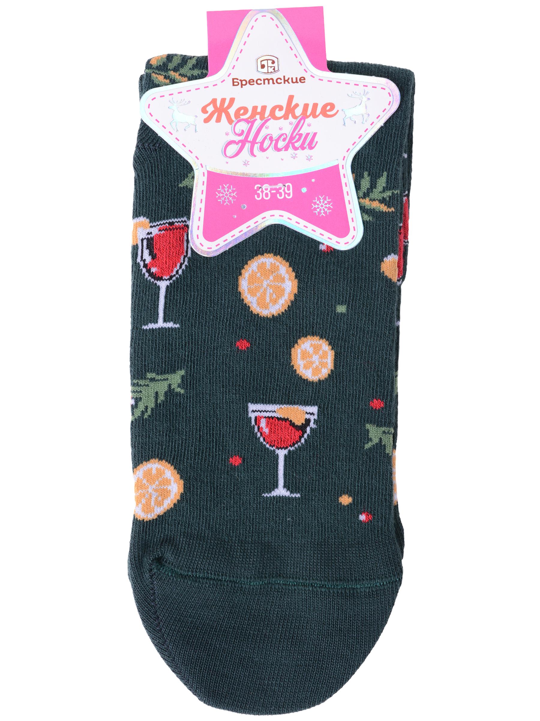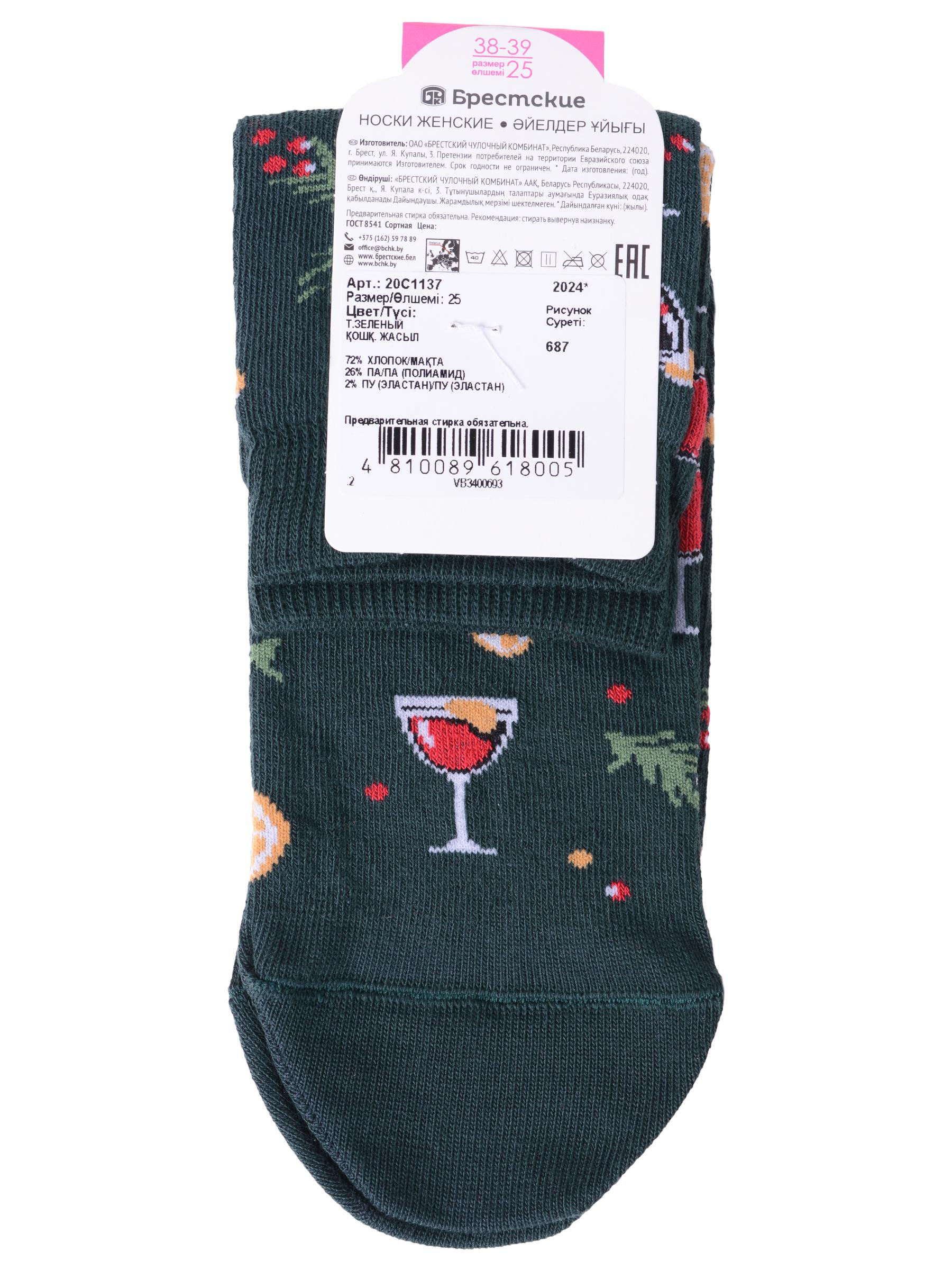 Круглогодичные укороченные женские носки, цвет зеленый, шов плоский, принт (рисунок): новый год, состав: 72% хлопок, 26% полиамид, 2% эластан, арт. 20С1137. Производитель «Брестский чулочный комбинат ОАО, Беларусь» под брендом «Брестские (бчк)».
