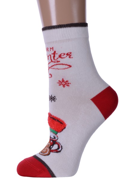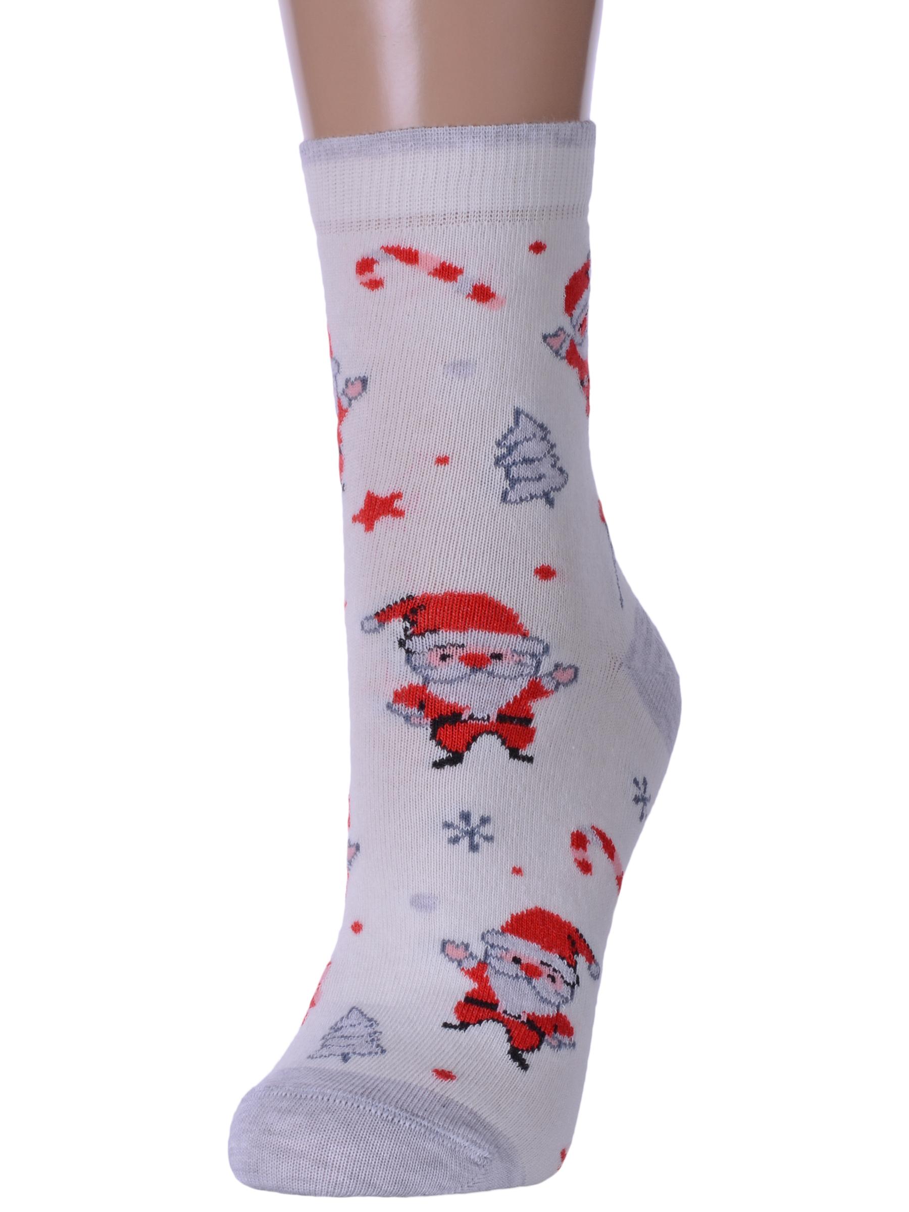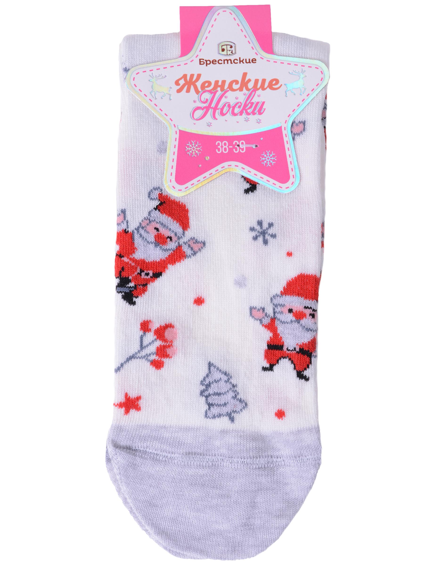Круглогодичные укороченные женские носки, цвет светло-серый, шов плоский, принт (рисунок): новый год, состав: 72% хлопок, 26% полиамид, 2% эластан, арт. 20С1137. Производитель «Брестский чулочный комбинат ОАО, Беларусь» под брендом «Брестские (бчк)».