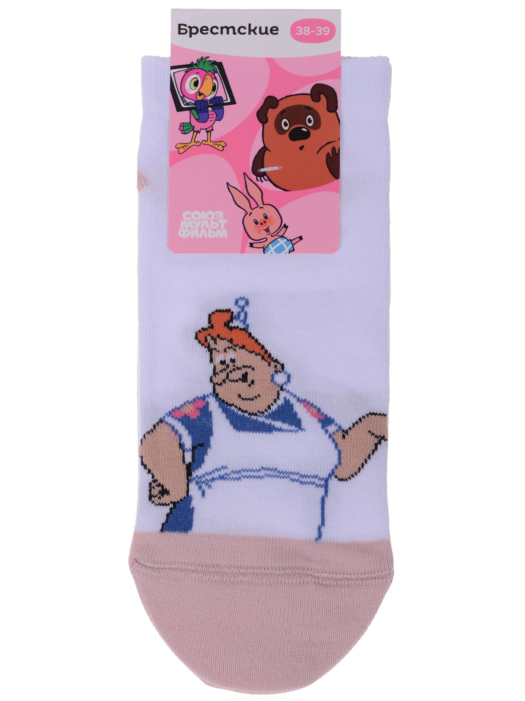 Летние короткие женские носки, цвет белый, разного цвета, шов плоский, принт (рисунок): фильмы / сериалы / мультики, состав: 66% хлопок, 32% полиамид, 2% эластан, арт. 23С1162. Производитель «Брестский чулочный комбинат ОАО, Беларусь» под брендом «Брестские (бчк)».