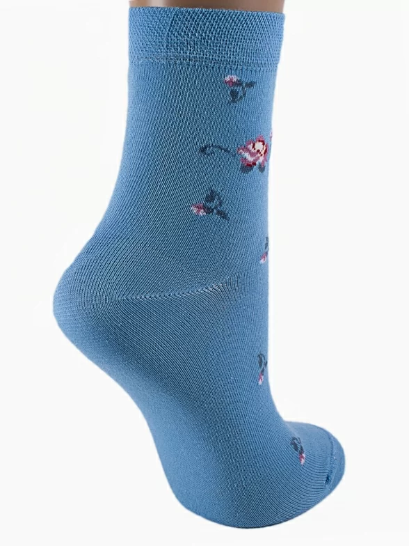 Высококачественные женские носки классической длины, оформленные контрастными флористическими узорами. Они изготовлены из очень качественного трикотажа и отличаются удобной мягкой резинкой.