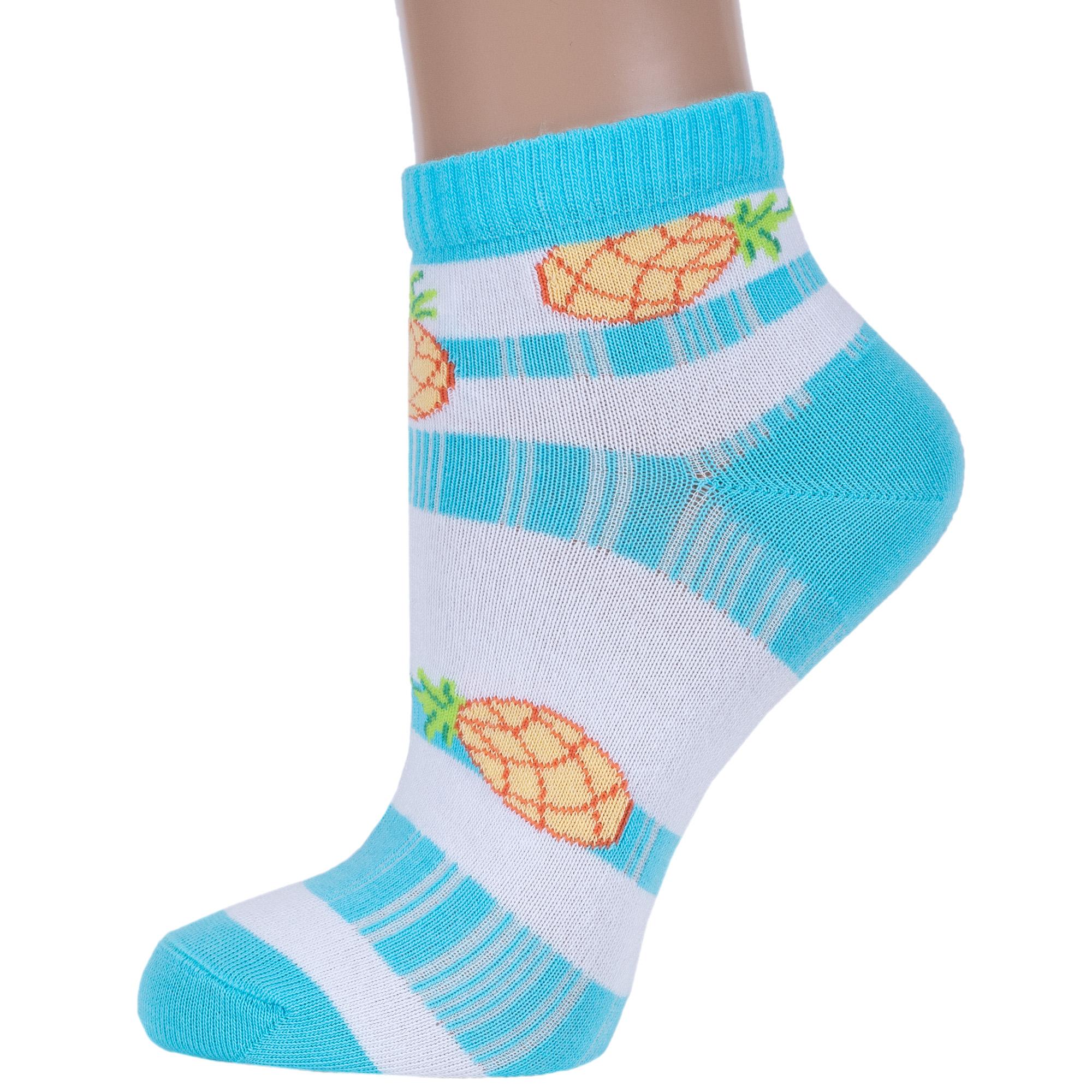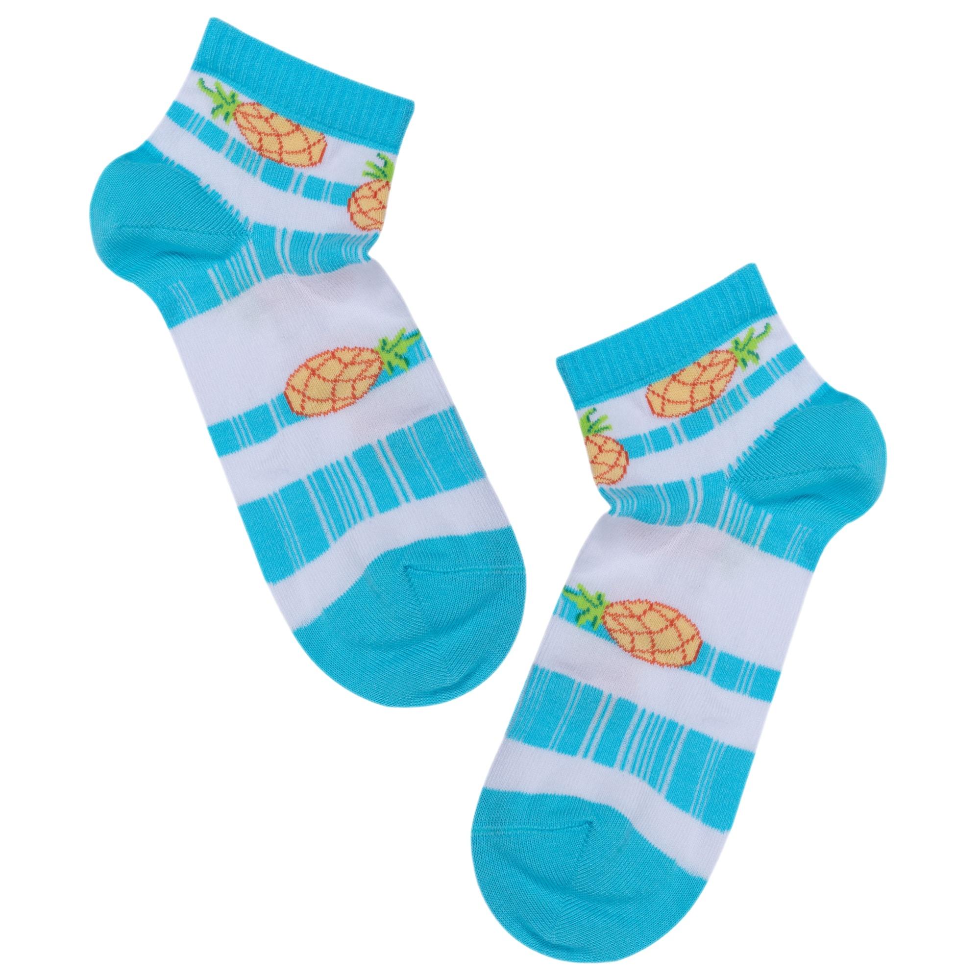 Круглогодичные короткие женские носки, цвет многоцветные (мультиколор)-бирюзовый, повседневные, шов кеттельный (бесшовная технология), принт (рисунок): вкусности, с узором, крупные контрастные рисунки, состав: 66% хлопок, 32% полиамид, 2% эластан, арт. 16С1103. Производитель «Брестский чулочный комбинат ОАО, Беларусь» под брендом «Брестские (бчк)».
