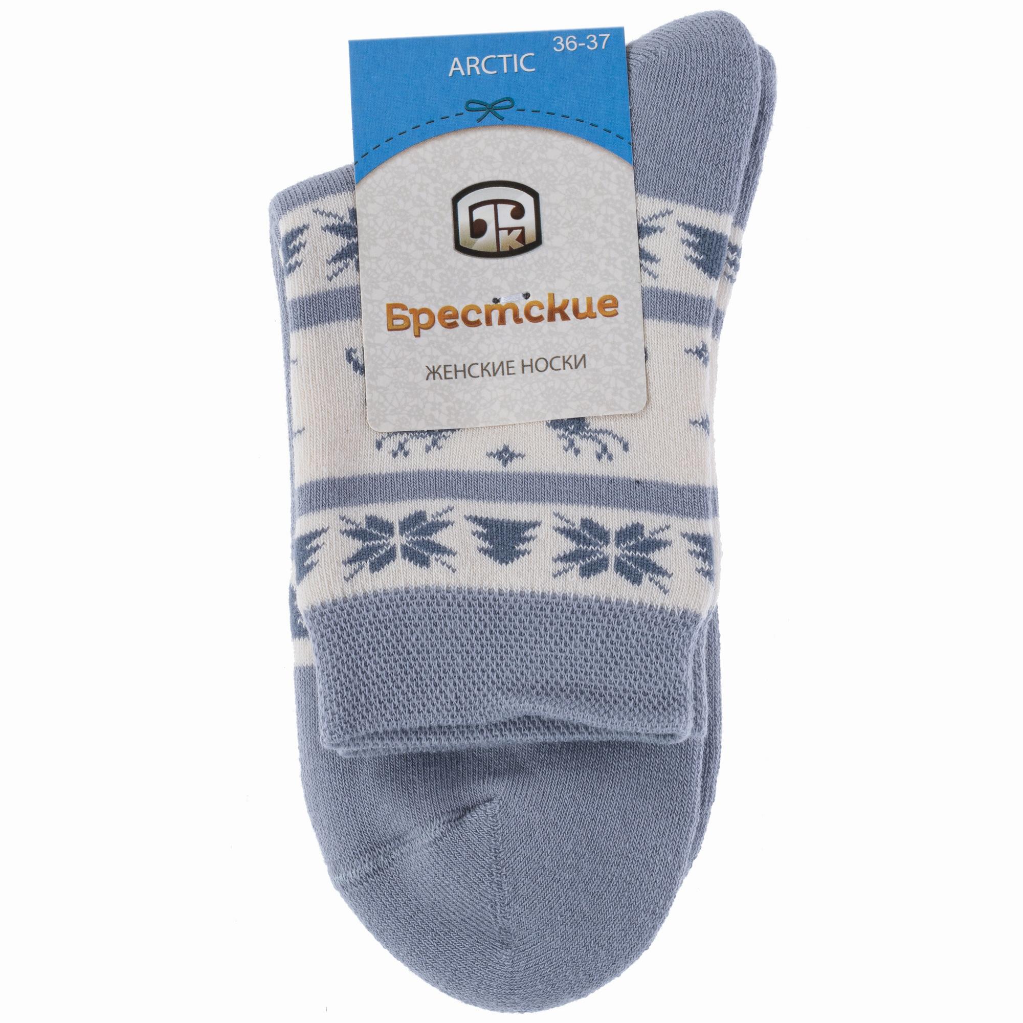 Зимние укороченные женские носки, цвет светло-серый, теплые, махровые, шов кеттельный (бесшовная технология), принт (рисунок): орнамент, норвежский жаккард, зимний, животные, с узором, состав: 83% хлопок, 16% полиэстер, 1% эластан, арт. 15С1408. Производитель «Брестский чулочный комбинат ОАО, Беларусь» под брендом «Брестские (бчк)».
