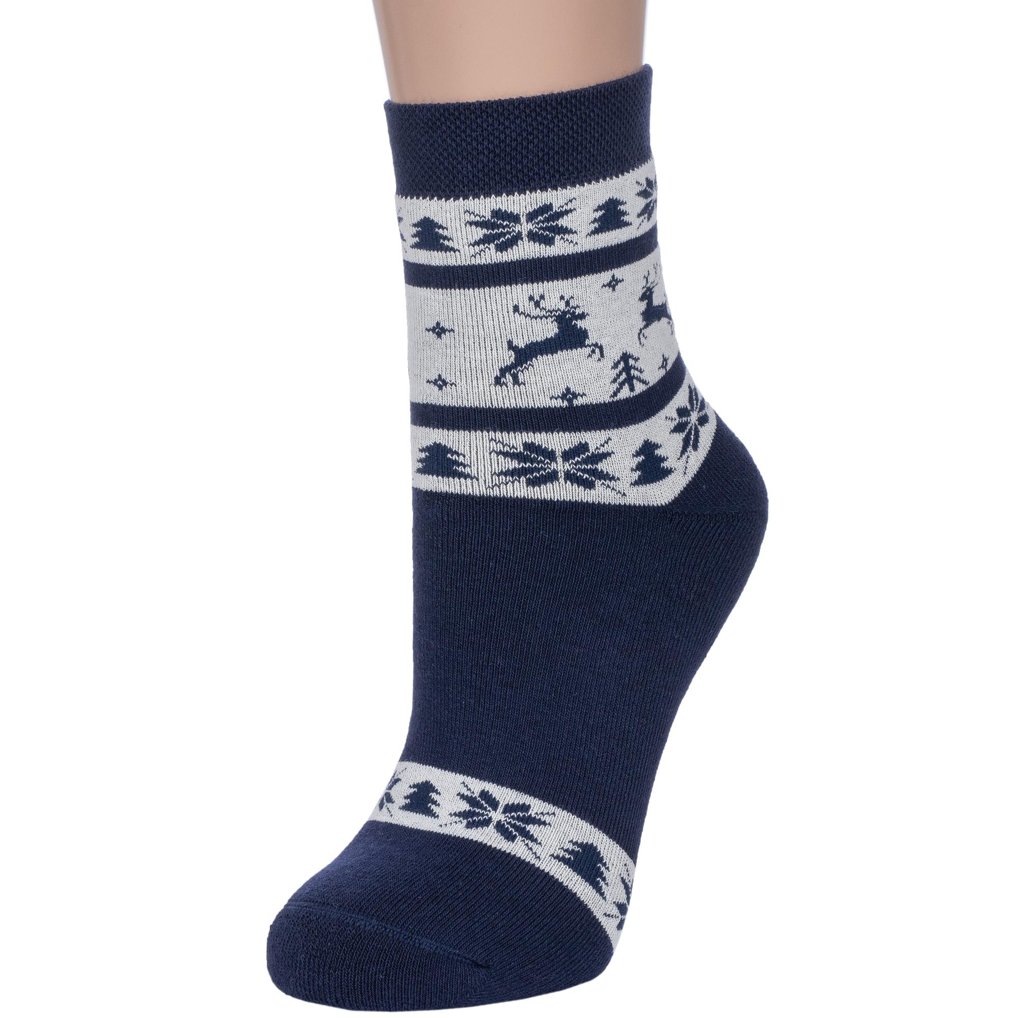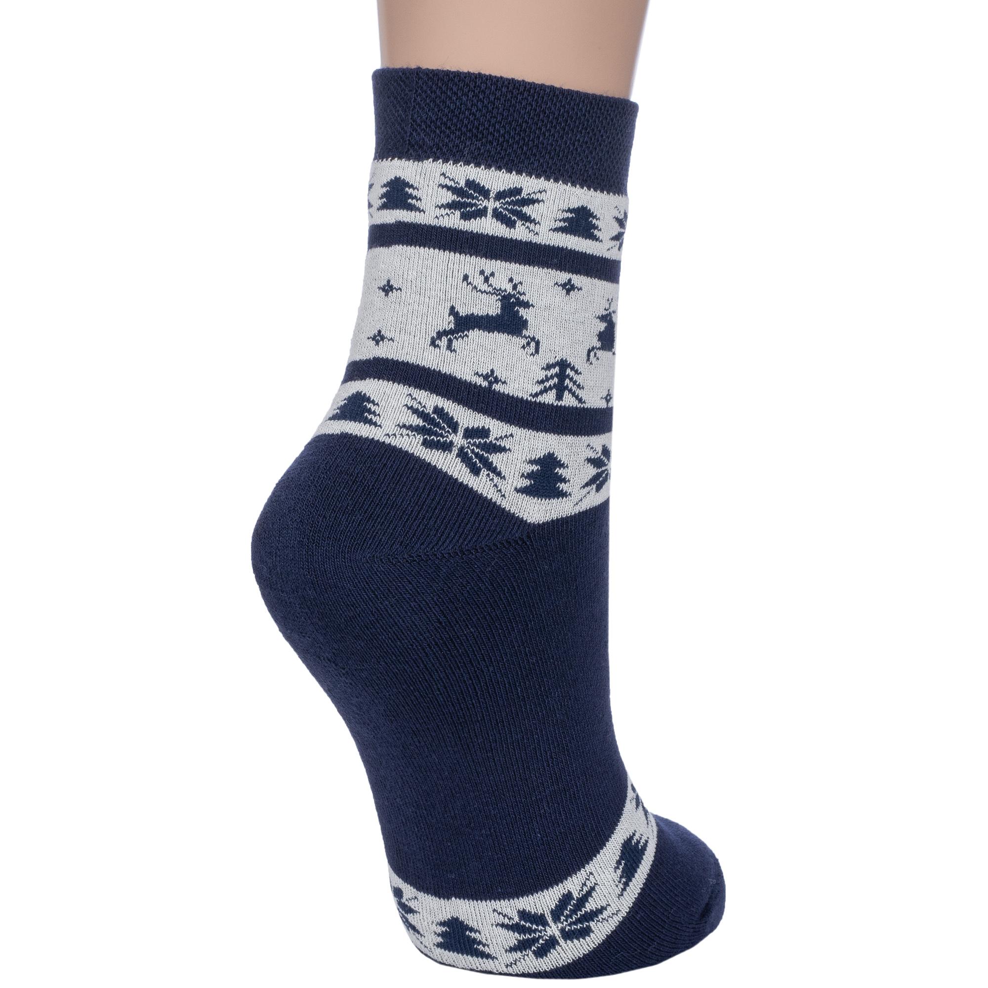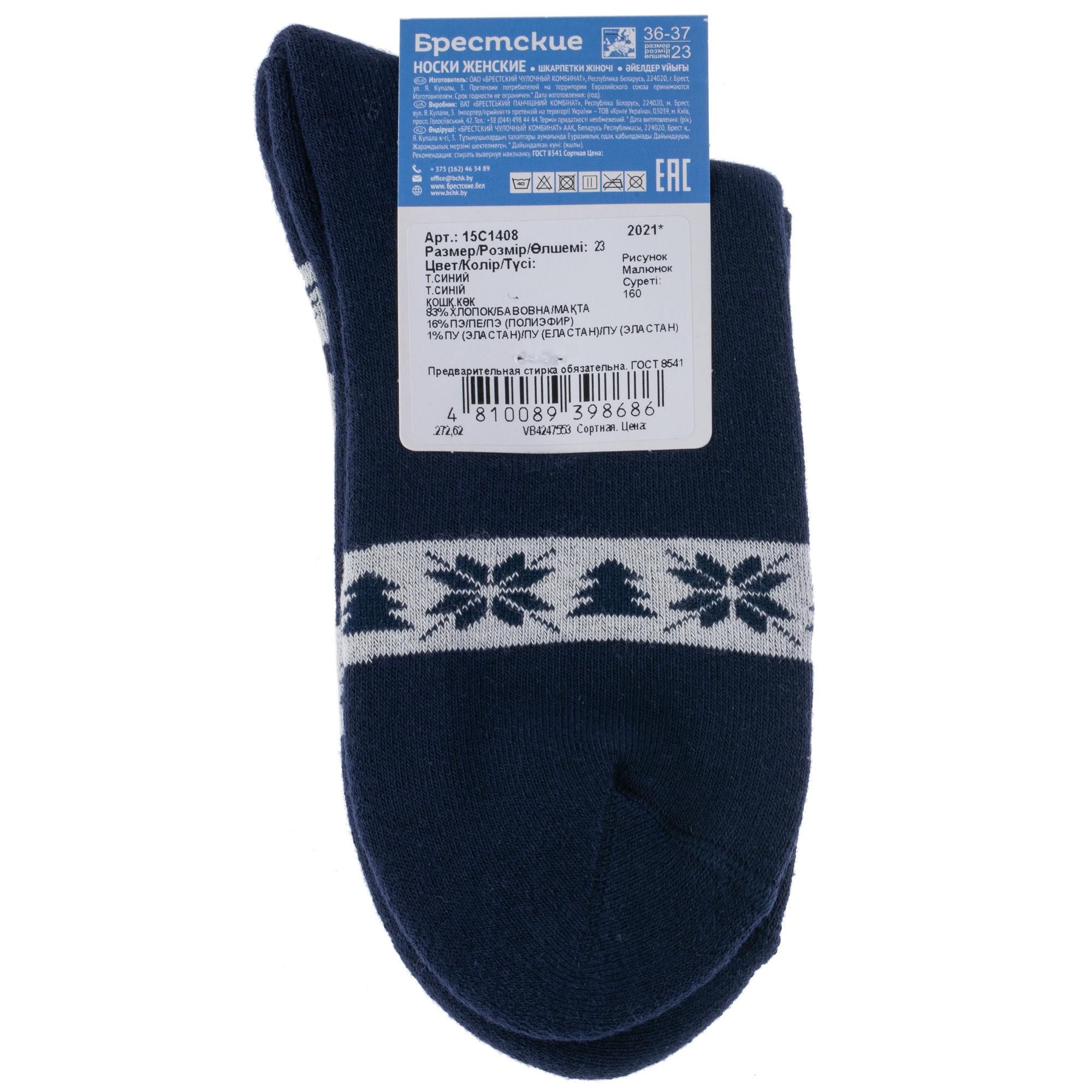 Зимние укороченные женские носки, цвет темно-синий, теплые, махровые, шов кеттельный (бесшовная технология), принт (рисунок): орнамент, норвежский жаккард, зимний, животные, с узором, состав: 83% хлопок, 16% полиэстер, 1% эластан, арт. 15С1408. Производитель «Брестский чулочный комбинат ОАО, Беларусь» под брендом «Брестские (бчк)».