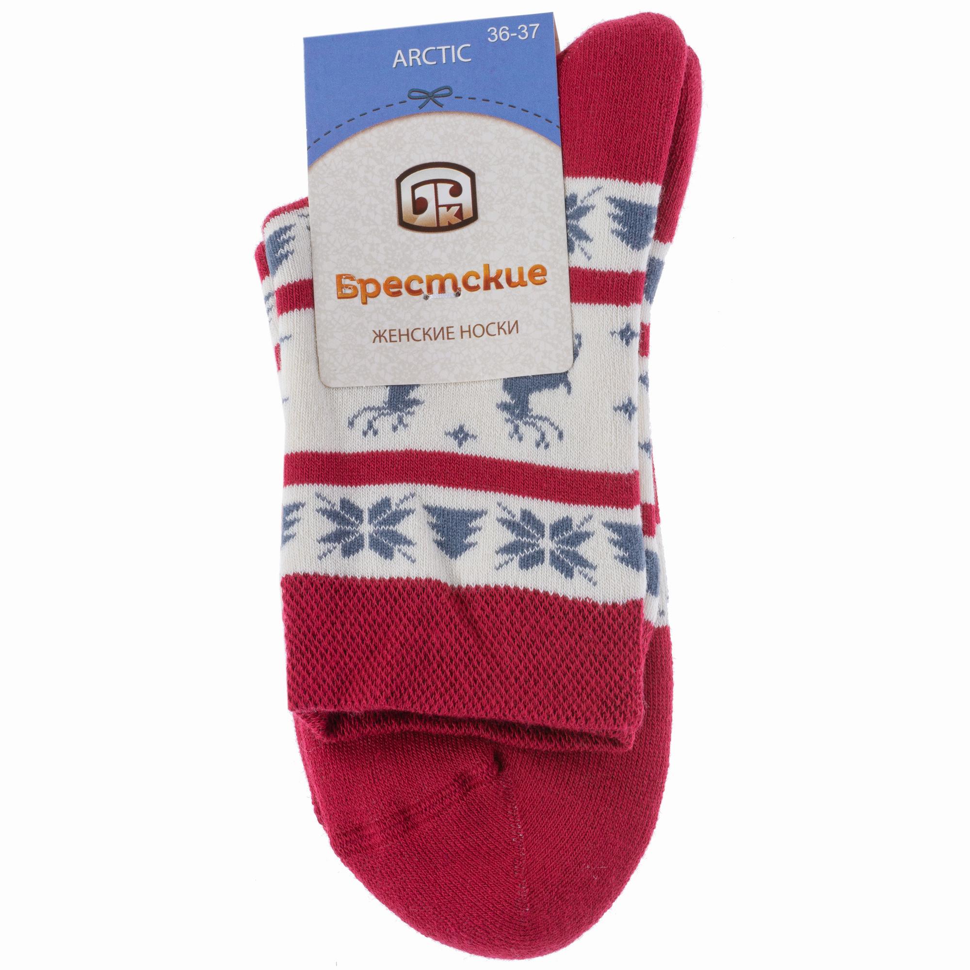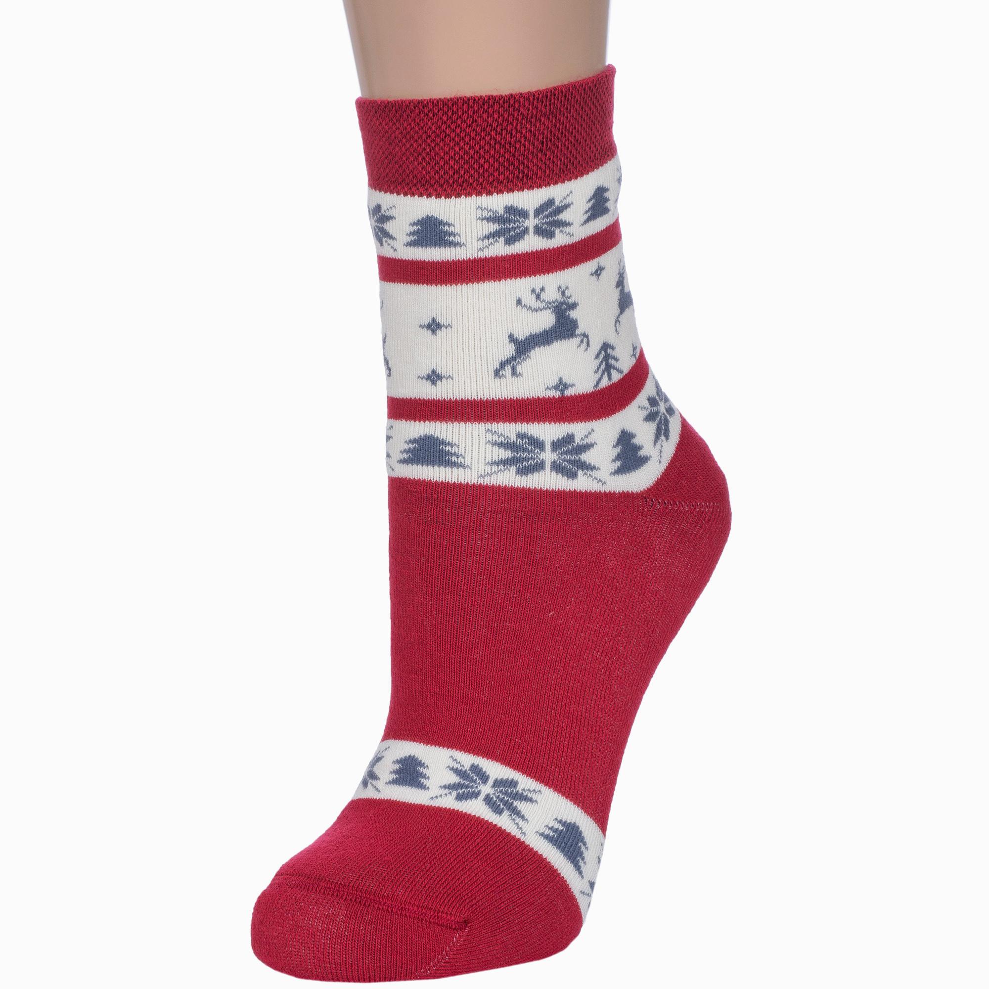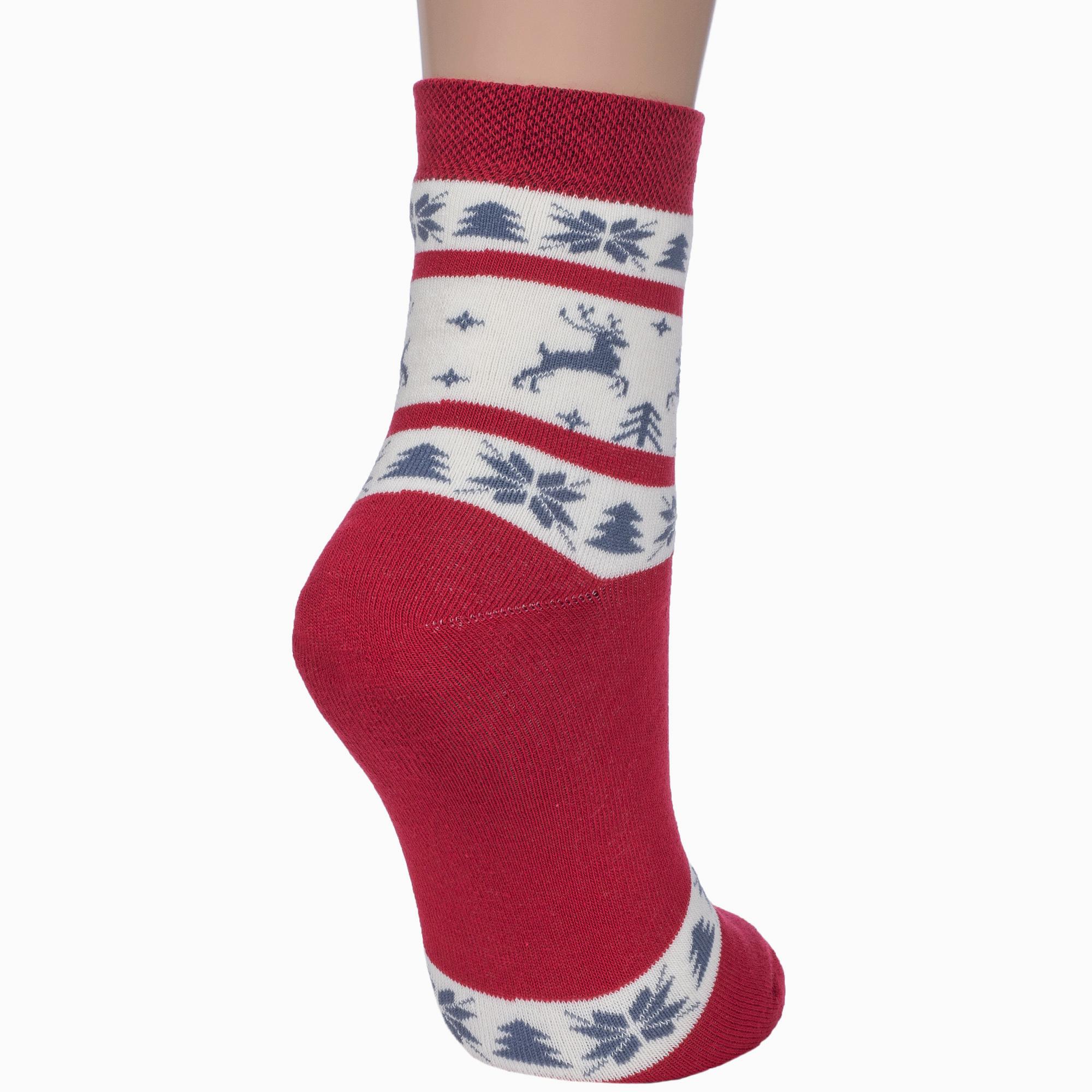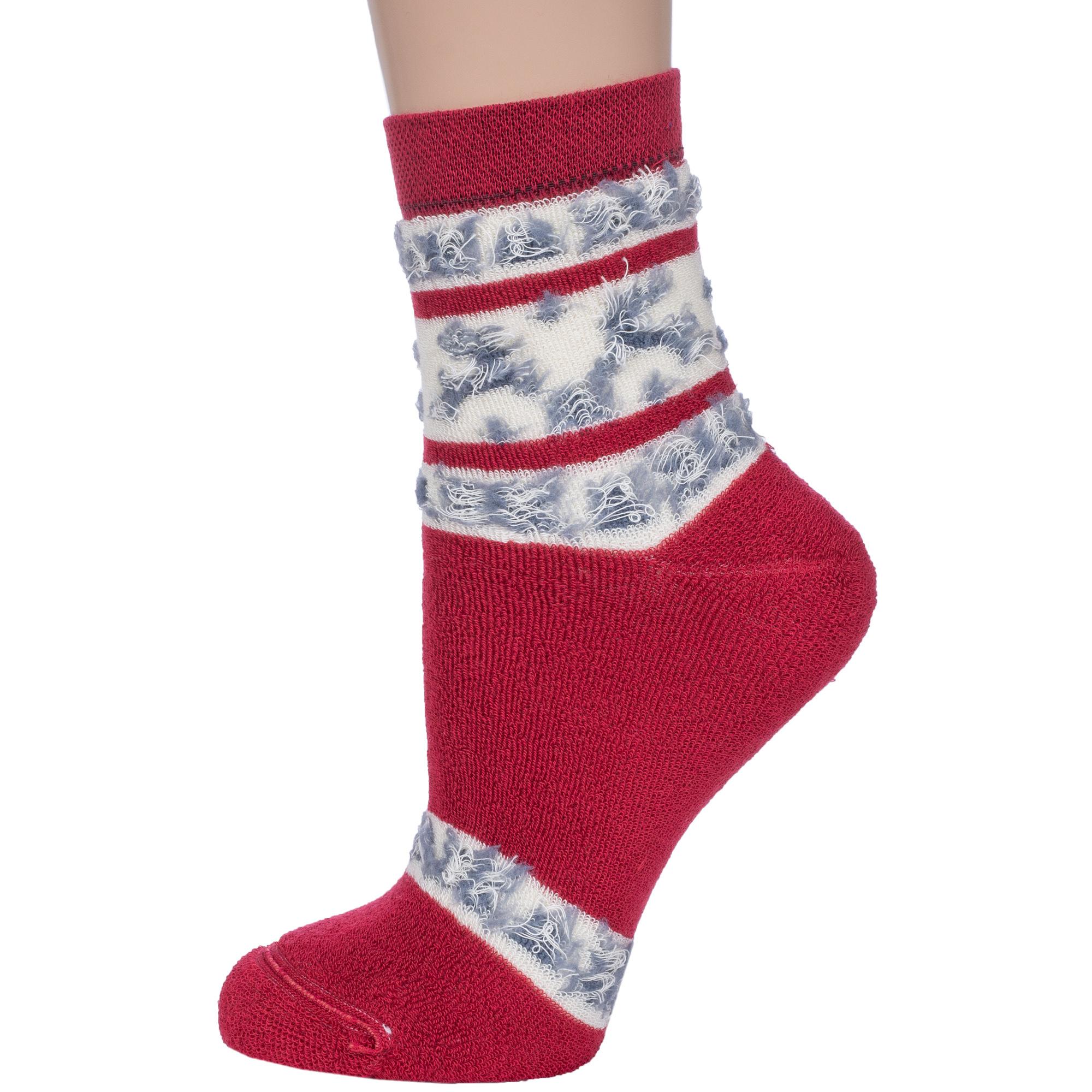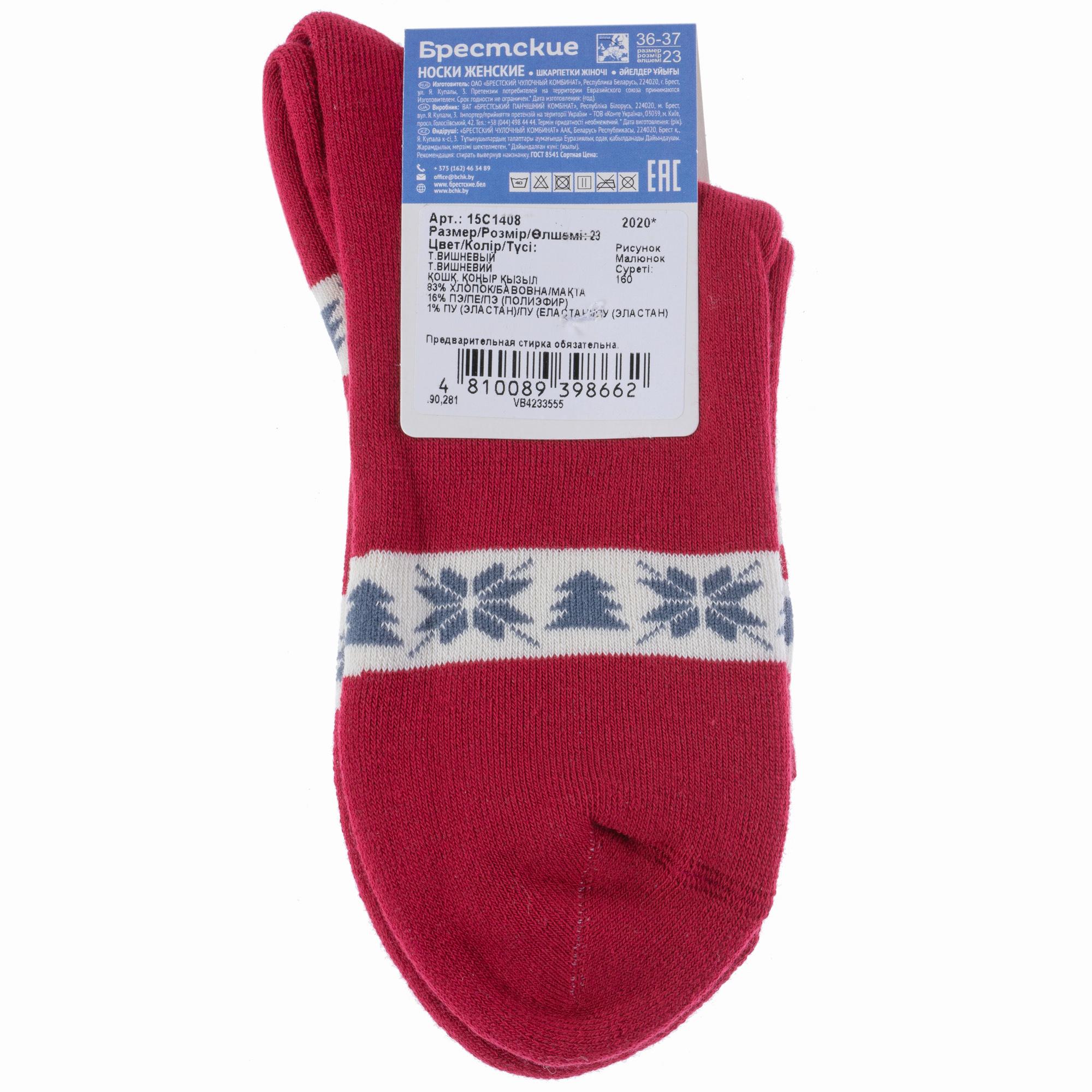 Зимние укороченные женские носки, цвет красный-бордовый, теплые, махровые, шов кеттельный (бесшовная технология), принт (рисунок): орнамент, норвежский жаккард, зимний, животные, с узором, состав: 83% хлопок, 16% полиэстер, 1% эластан, арт. 15С1408. Производитель «Брестский чулочный комбинат ОАО, Беларусь» под брендом «Брестские (бчк)».