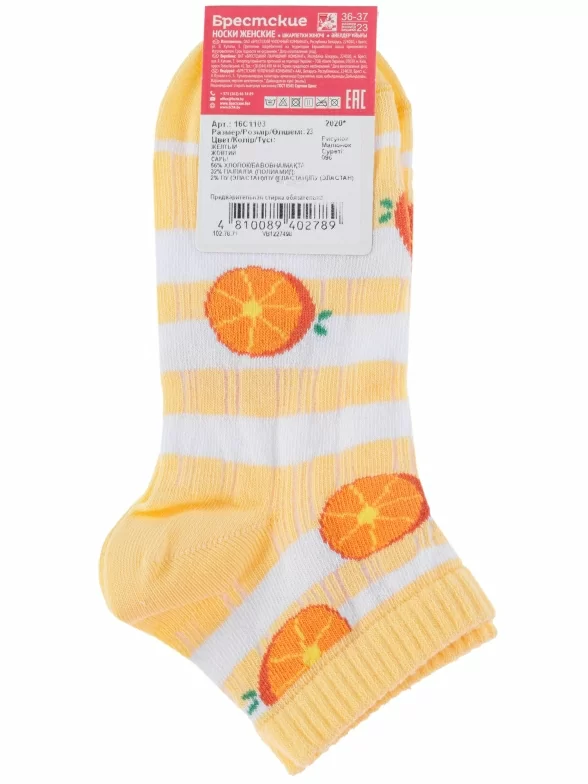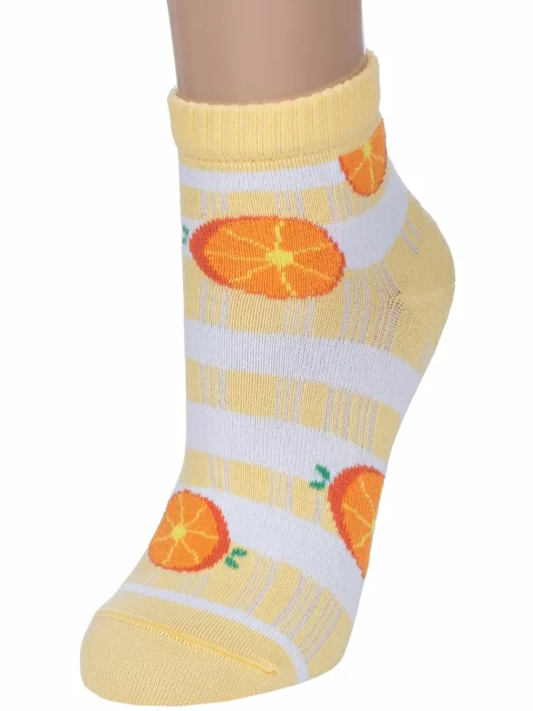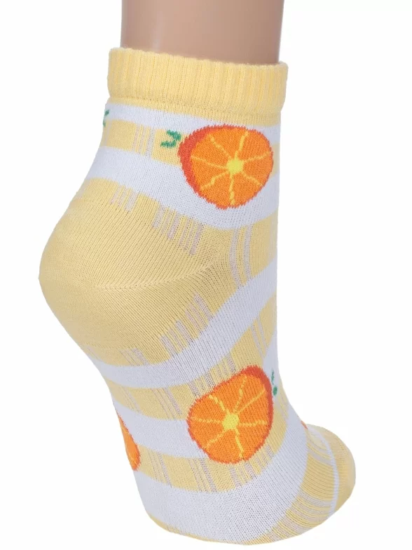Кому-то хочется посочнее? Это легко! Укороченные женские носки в очень сочной расцветке с принтом в виде фруктов и контрастными полосками станут отличным дополнением к ярким кедам или кроссовкам!