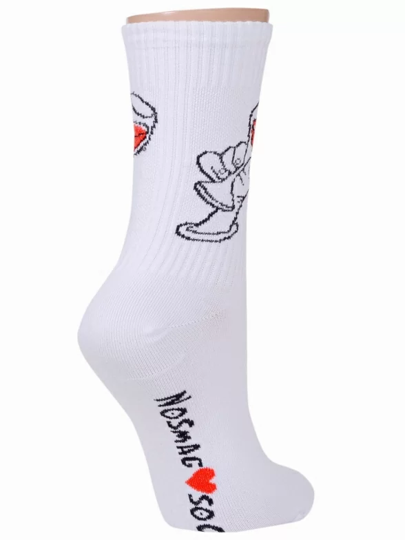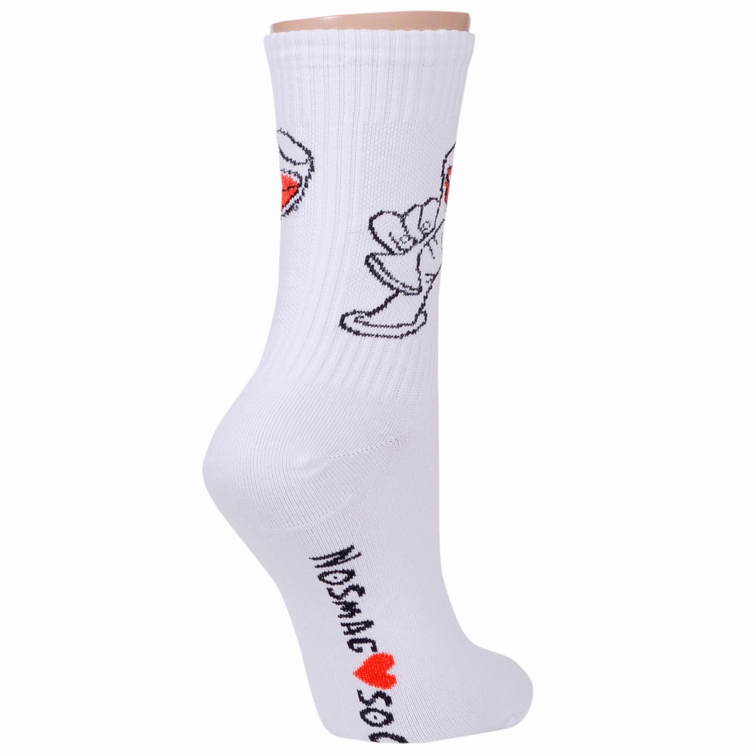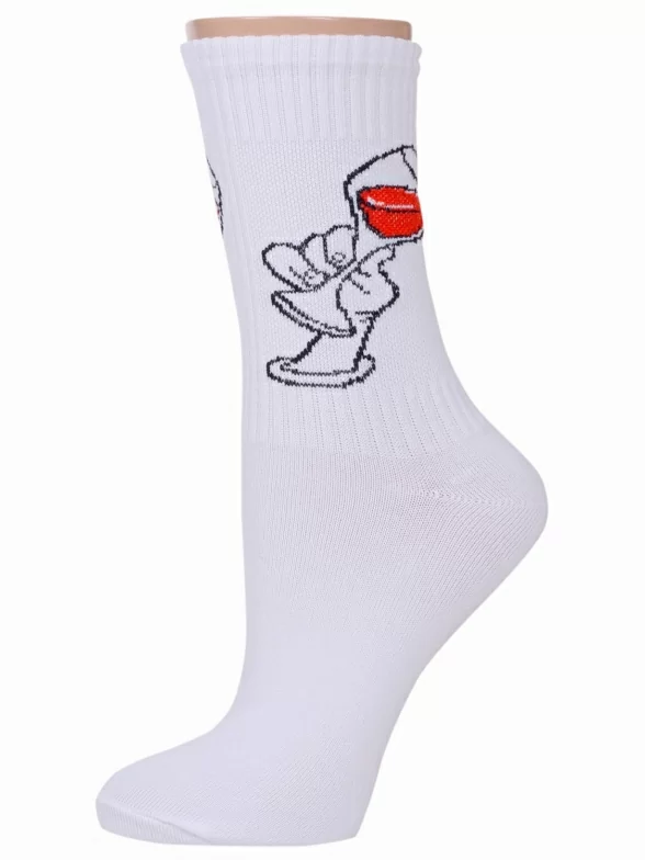 Круглогодичные или летние средней длины женские носки, цвет белый, повседневные, шов обычный (не бесшовные), принт (рисунок): еда и напитки, в рубчик, с узором, крупные контрастные рисунки, состав: 90% хлопок, 7% полиамид, 3% эластан, арт. L34ж. Производитель «ЧЕЛНЫ ТЕКСТИЛЬ» Россия под брендом «Челны текстиль».