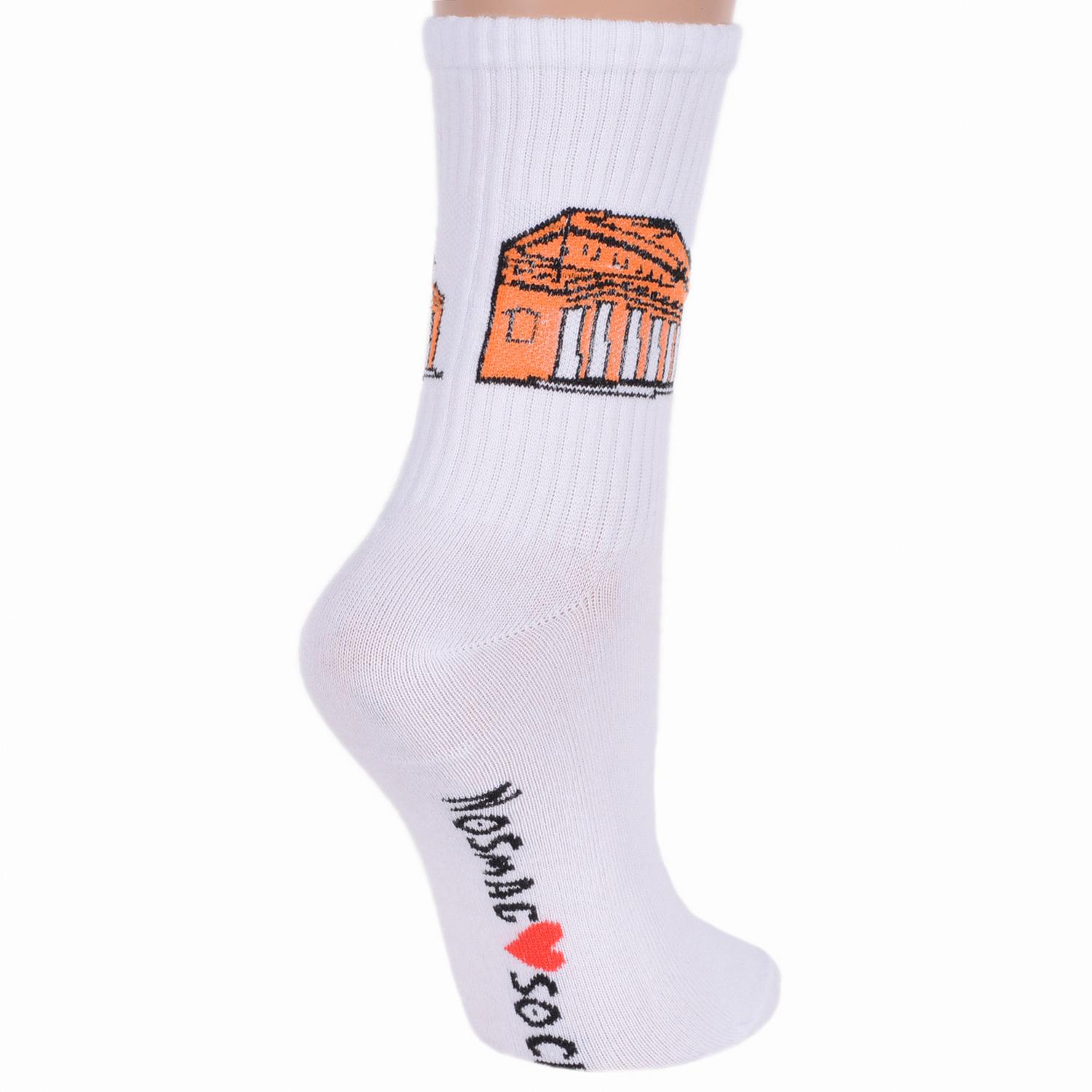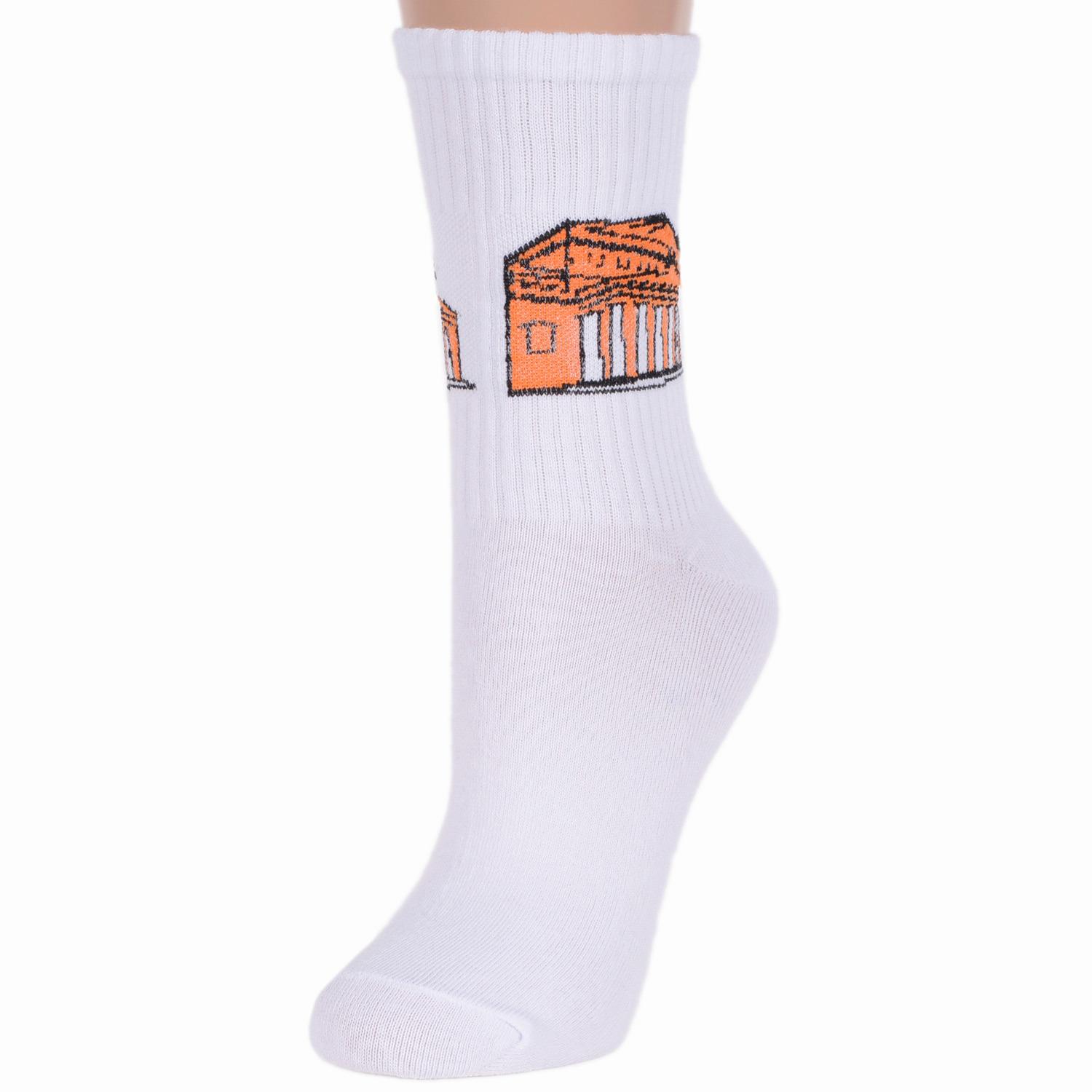 Круглогодичные или летние средней длины женские носки, цвет белый, повседневные, шов обычный (не бесшовные), принт (рисунок): путешествия, в рубчик, архитектура, с узором, крупные контрастные рисунки, состав: 90% хлопок, 7% полиамид, 3% эластан, арт. L34ж. Производитель «ЧЕЛНЫ ТЕКСТИЛЬ» Россия под брендом «Челны текстиль».