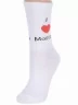 Круглогодичные или летние средней длины женские носки, цвет белый, повседневные, шов обычный (не бесшовные), принт (рисунок): надписи, в рубчик, с узором, крупные контрастные рисунки, состав: 90% хлопок, 7% полиамид, 3% эластан, арт. L34ж. Производитель «ЧЕЛНЫ ТЕКСТИЛЬ» Россия под брендом «Челны текстиль».