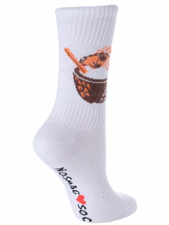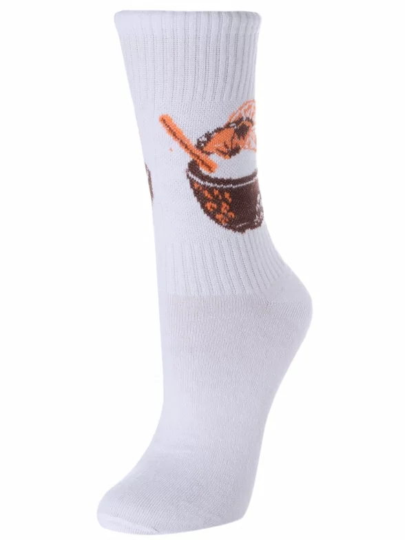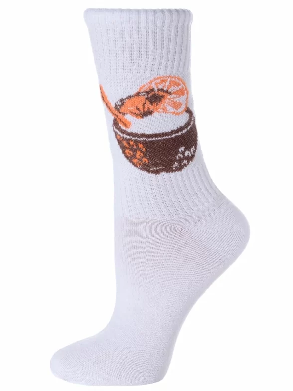 Круглогодичные или летние средней длины женские носки, цвет белый, повседневные, шов обычный (не бесшовные), принт (рисунок): еда и напитки, в рубчик, с узором, крупные контрастные рисунки, состав: 90% хлопок, 7% полиамид, 3% эластан, арт. L34ж. Производитель «ЧЕЛНЫ ТЕКСТИЛЬ» Россия под брендом «Челны текстиль».