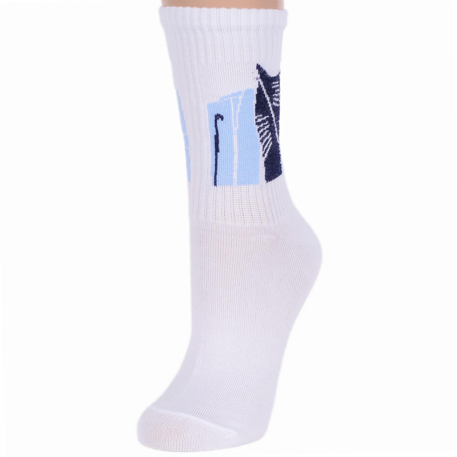 Круглогодичные или летние средней длины женские носки, цвет белый, повседневные, шов обычный (не бесшовные), принт (рисунок): работа / офис, путешествия, в рубчик, архитектура, с узором, крупные контрастные рисунки, состав: 90% хлопок, 7% полиамид, 3% эластан, арт. L34ж. Производитель «ЧЕЛНЫ ТЕКСТИЛЬ» Россия под брендом «Челны текстиль».