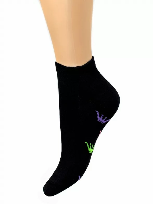 Женские носки классической длины Красная ветка. Изготовлены из хлопка, с добавлением полиамида и эластана. Отлично сочетаются с повседневной одеждой. Особенность модели - озорной принт в виде разноцветных корон.