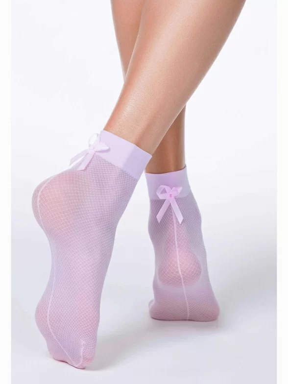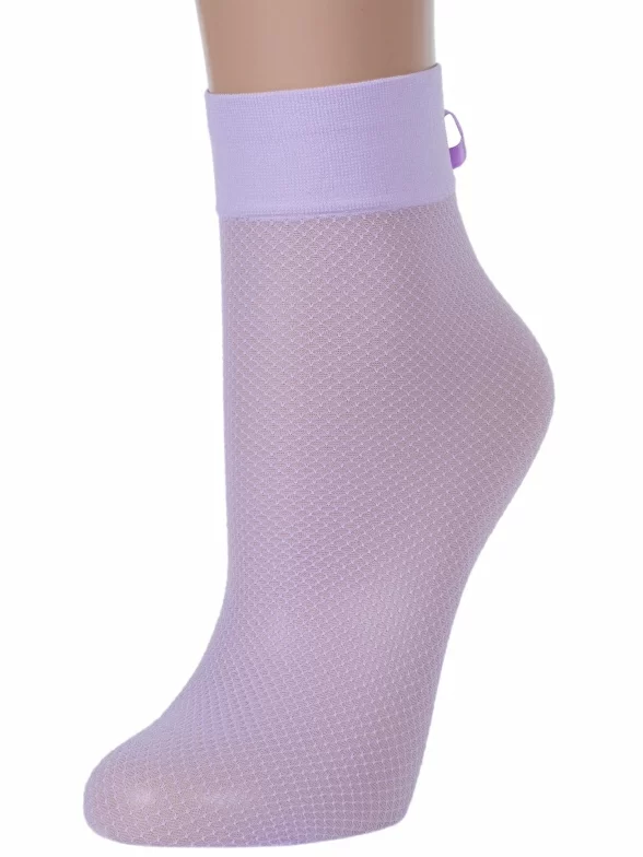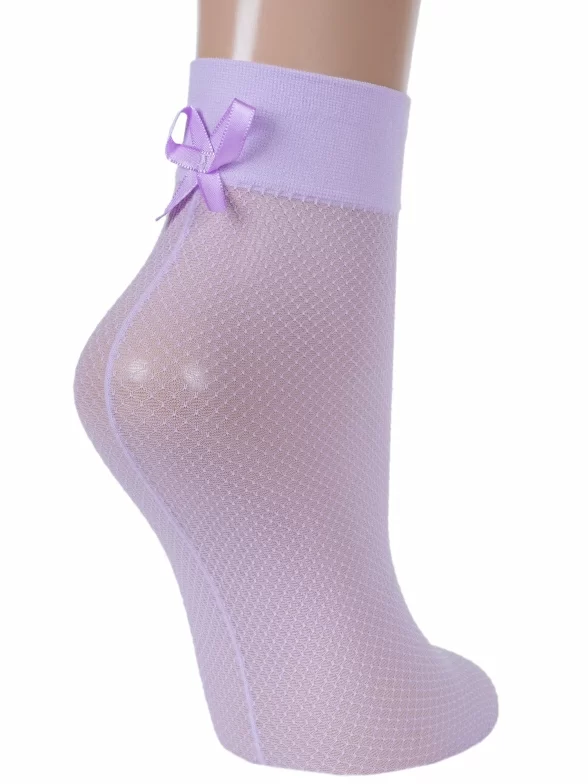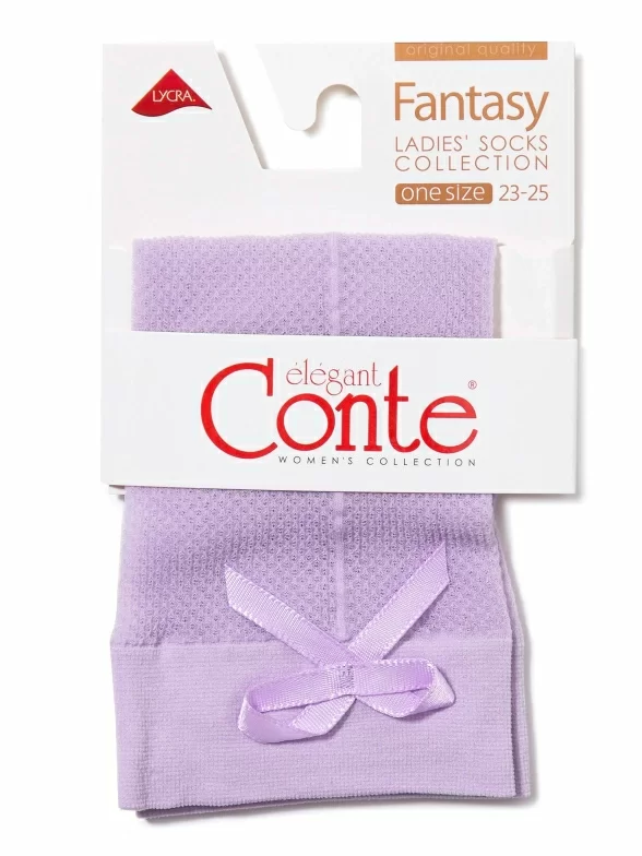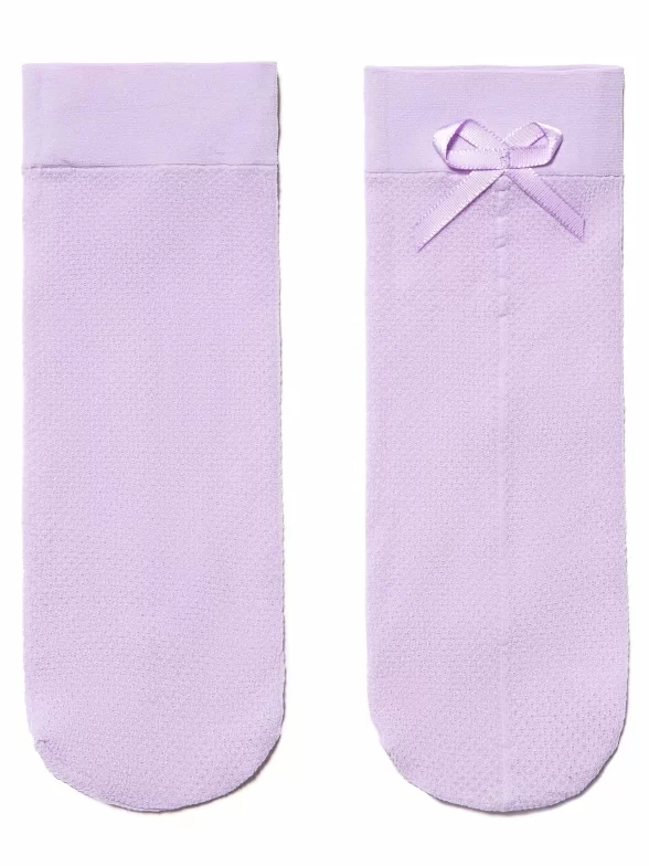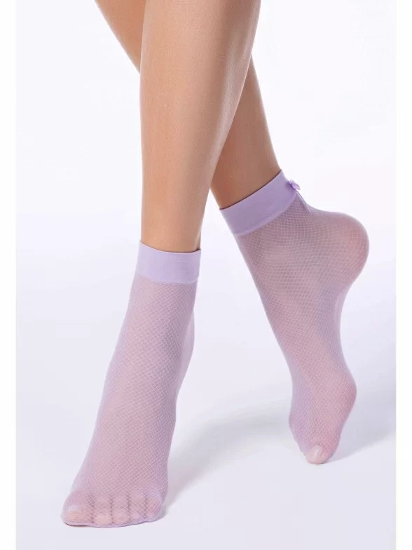 Женские однотонные носки связаны в сетку. Модель от белоруской марки Conte сделана из полиамида и эластана. Сзади — небольшой бантик в тон изделию.