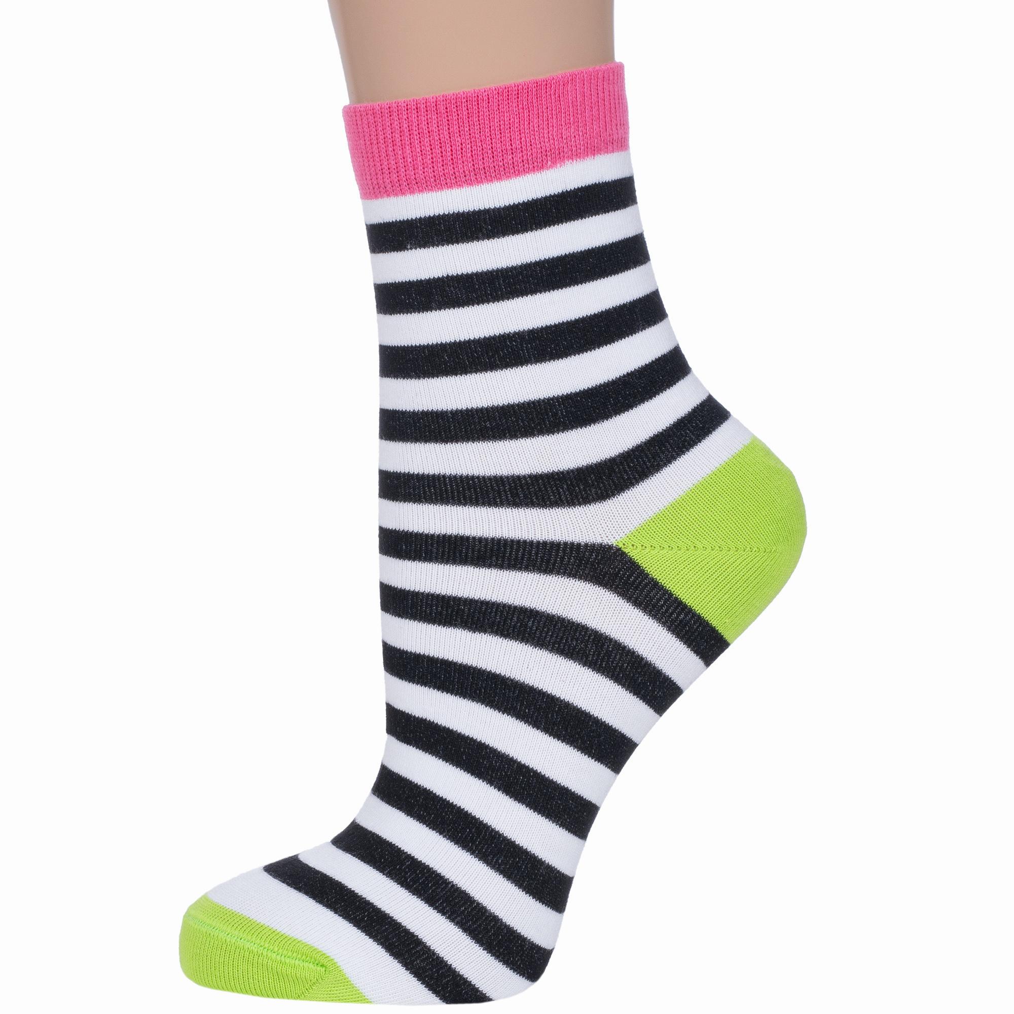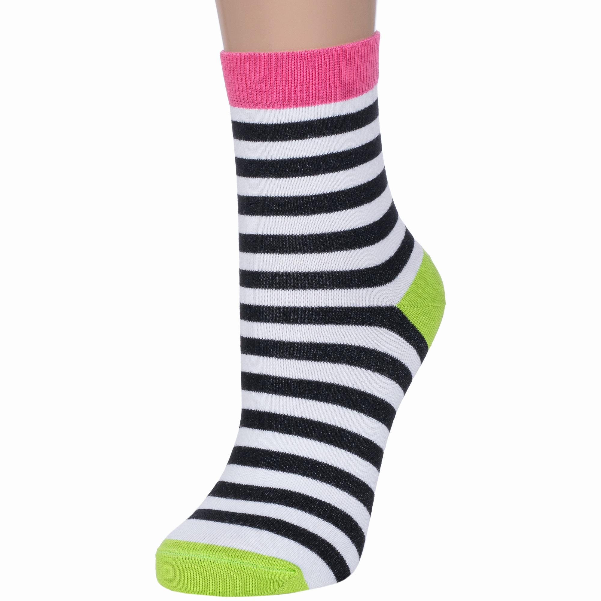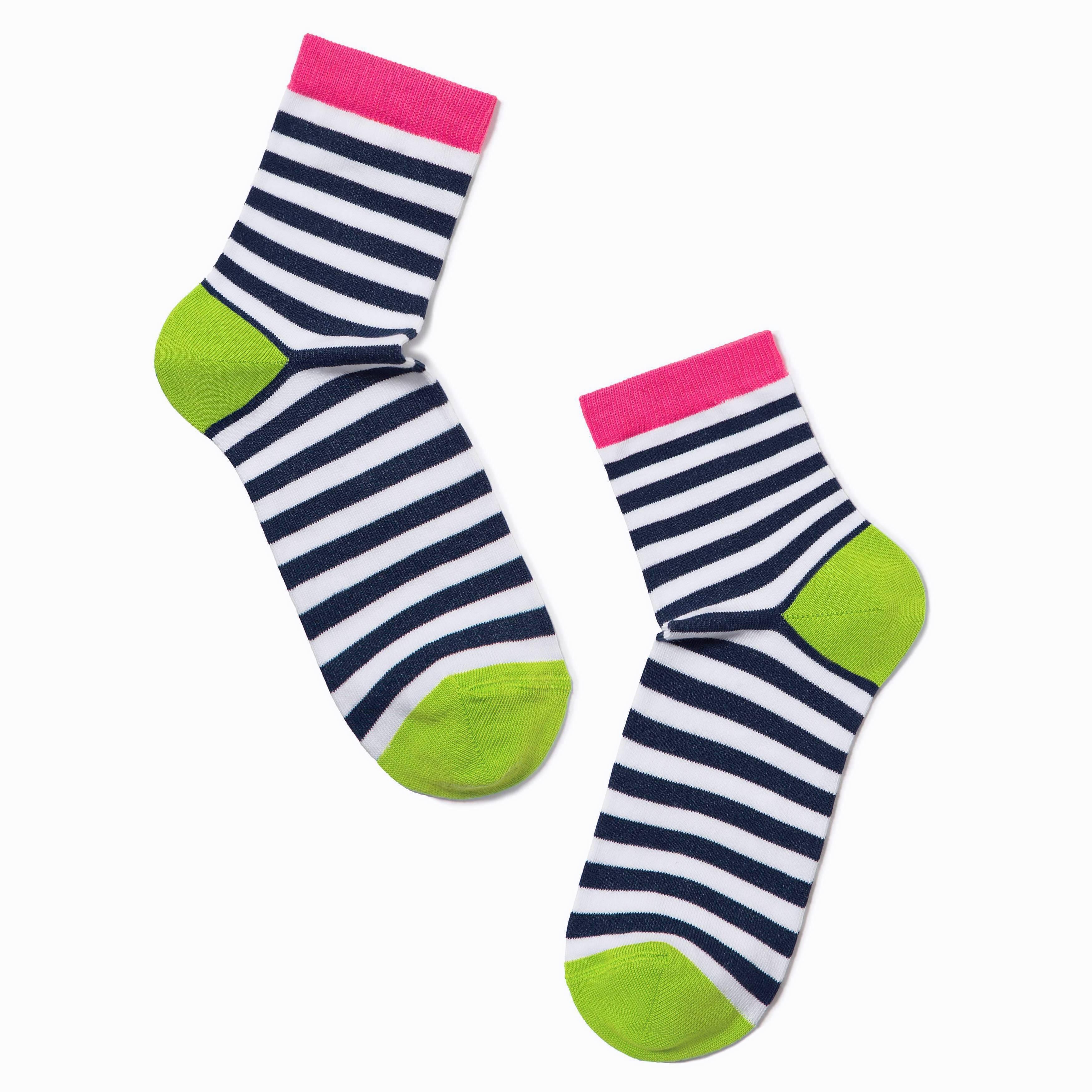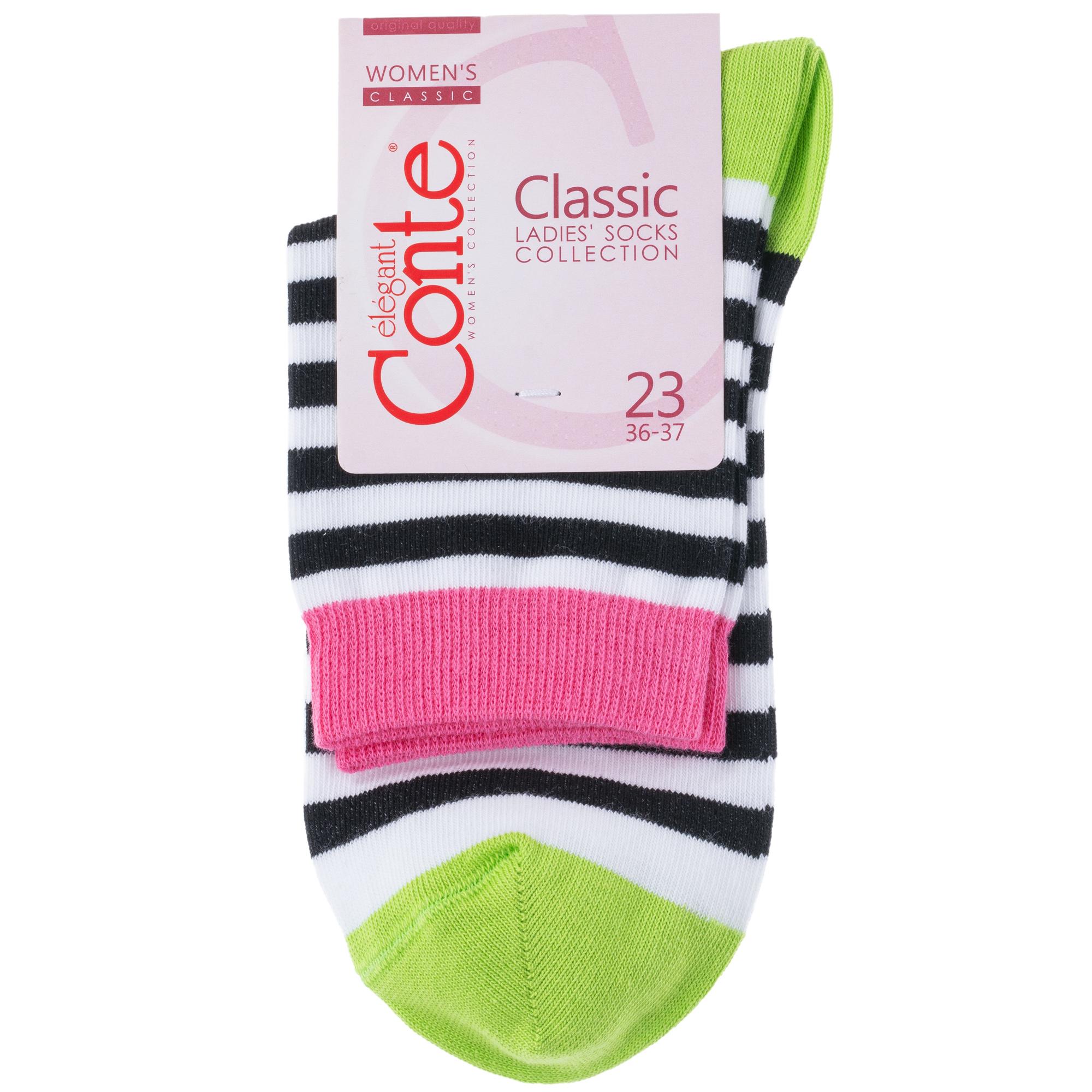 Круглогодичные укороченные женские носки, цвет многоцветные (мультиколор), классические, шов кеттельный (бесшовная технология), принт (рисунок): полоски, с узором, состав: 72% хлопок, 25.5% полиамид, 2.5% эластан, арт. 7С-22СП. Производитель «Conte, Беларусь» под брендом «Conte».