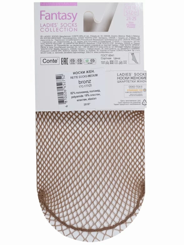 Женские носки Conte артикул 17С-177СП в цвете бронзовый — летний вариант для повседневной носки. Размерный ряд охватывает обувь с 36 по 39, длина стопы — от 23 до 25 см. Бронзовый оттенок придаёт образу лёгкую элегантность и хорошо сочетается с нейтральной обувью.