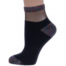 Круглогодичные или летние укороченные женские носки, цвет черный, необычные, повседневные, шов кеттельный (бесшовная технология), принт (рисунок): прозрачные вставки (или имитация), контрастные пятка / мысок / резинка, состав: 57% хлопок, 28% полиамид, 10% полиэстер, 3% мет (полиэстер), 2% эластан, арт. 20С-5СП. Производитель «Conte, Беларусь» под брендом «Conte».