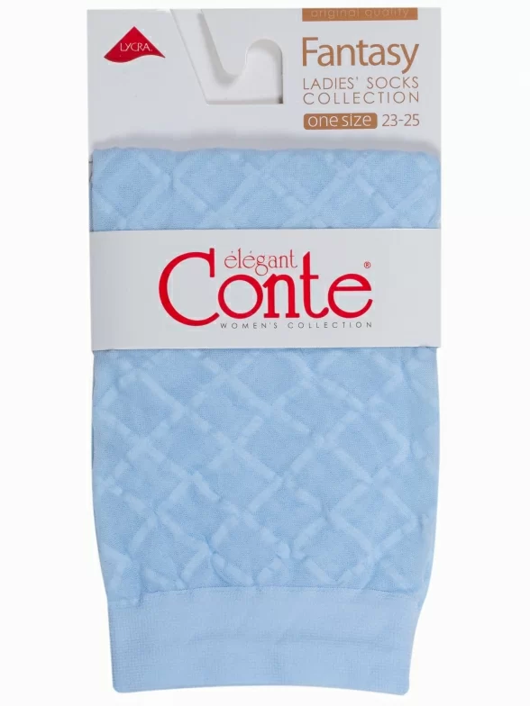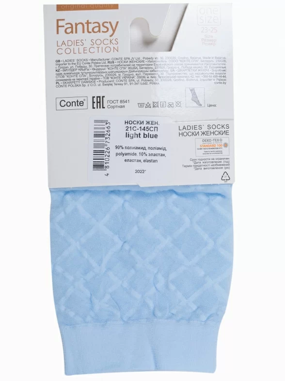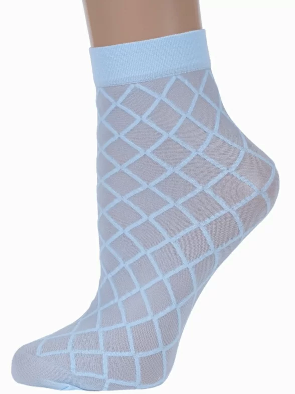 Летние укороченные женские носки, цвет голубой, капроновые, повседневные, шов обычный (не бесшовные), принт (рисунок): клетка, однотонный, состав: 90% полиамид, 10% эластан, арт. 21С-145СП. Производитель «Conte, Беларусь» под брендом «Conte».