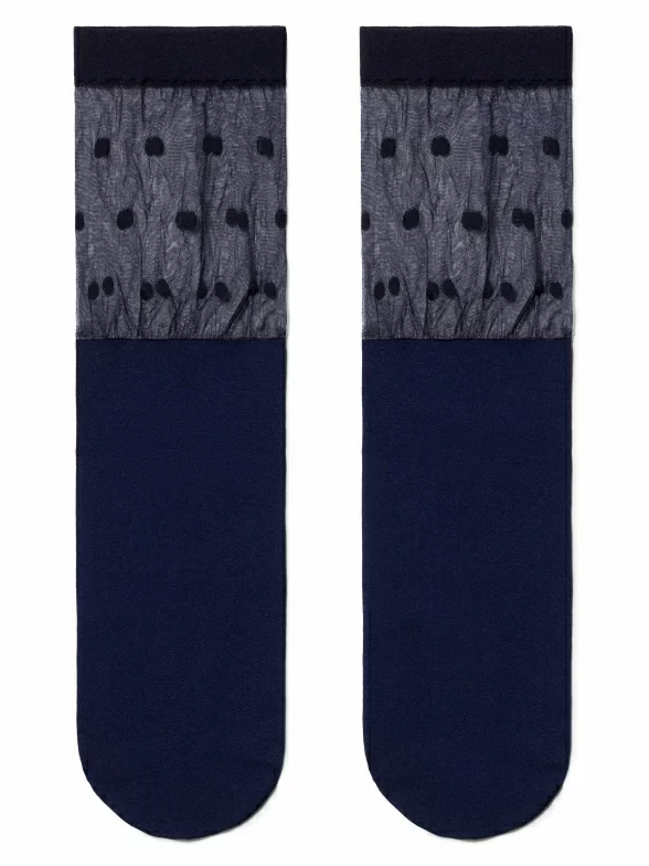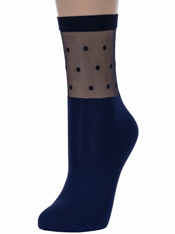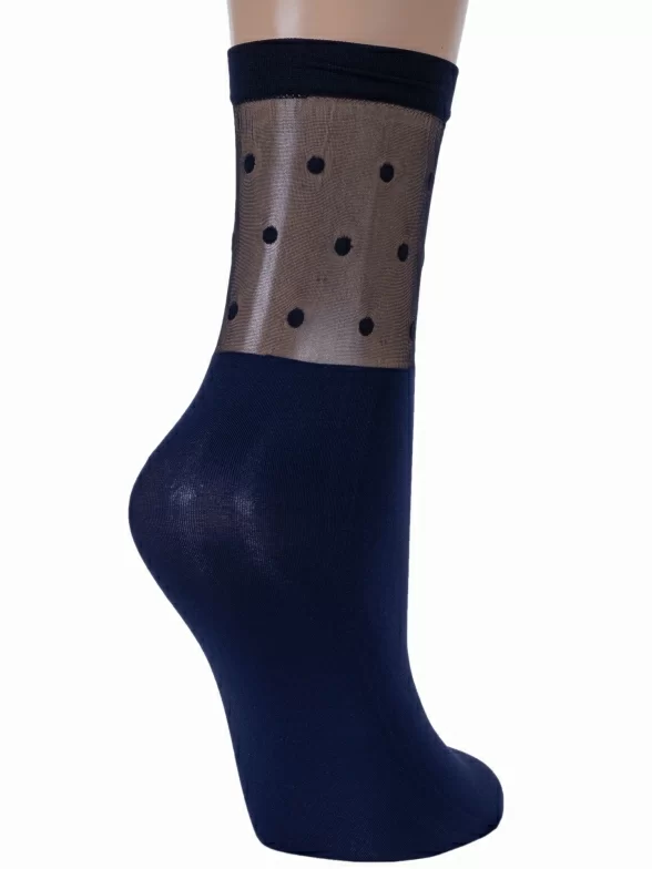 Женские однотонные носки с прозрачной вставкой в горох на паголенке.