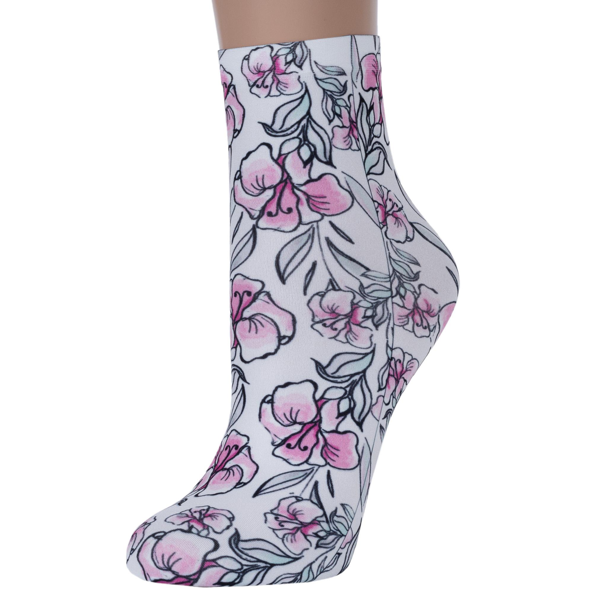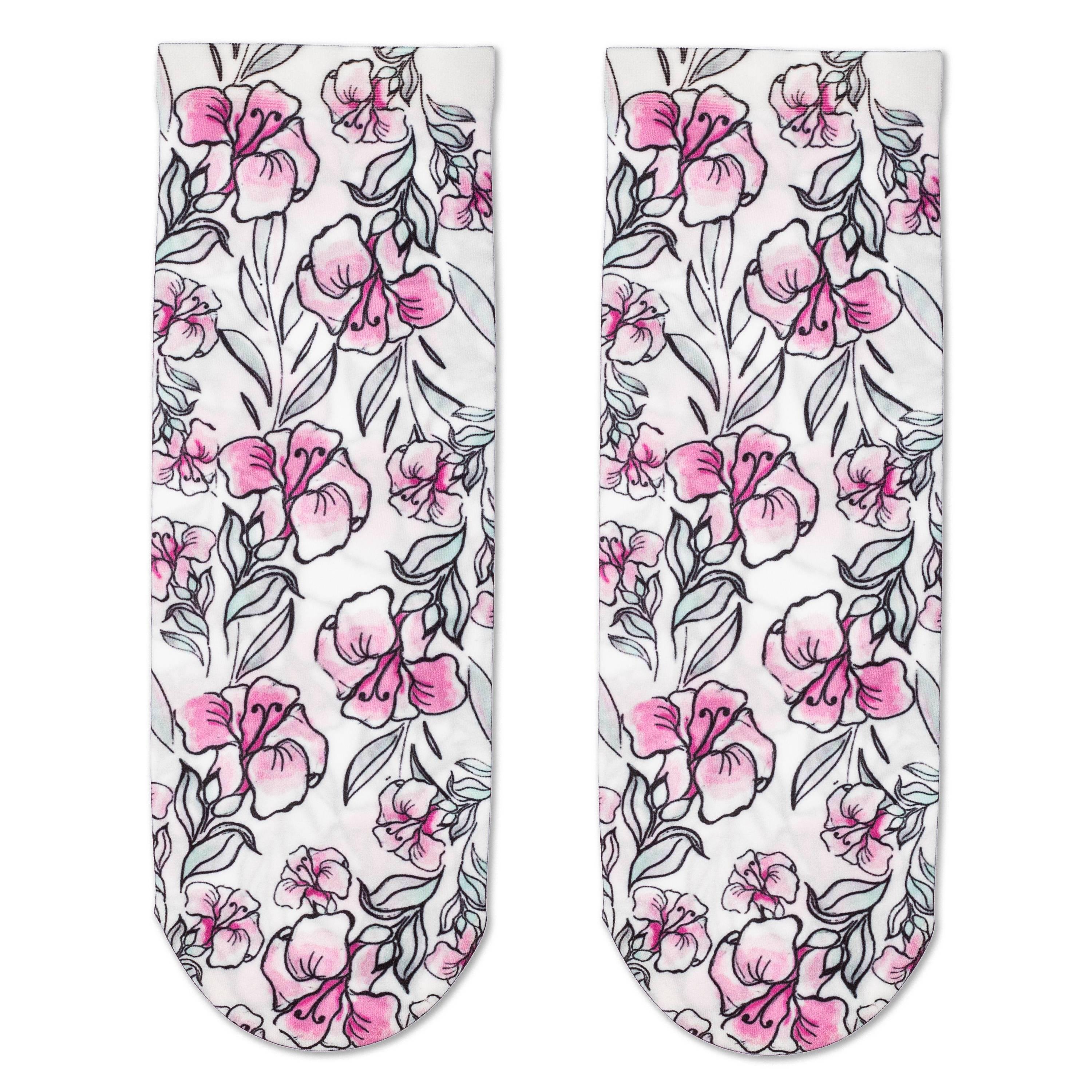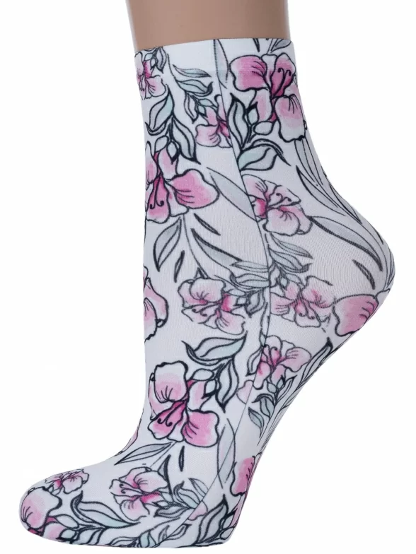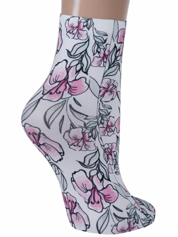 Капроновые фантазийные женские носки плотностью 70 den с цветочным принтом, нанесенным термопечатью.