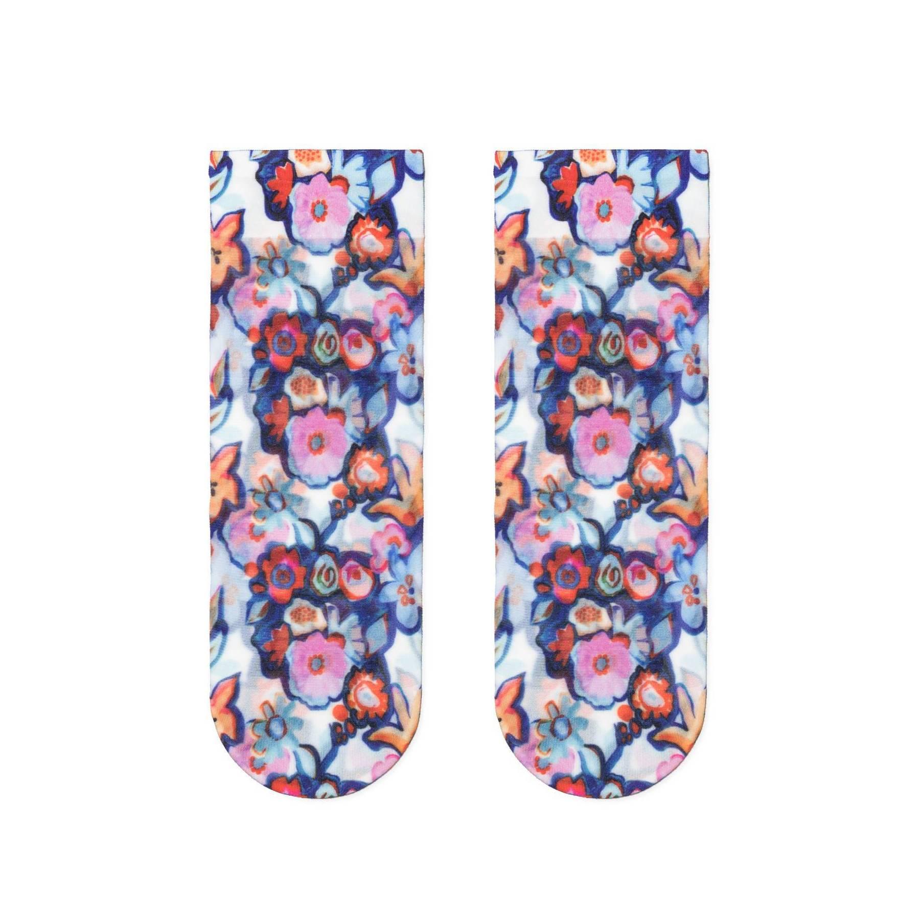 Капроновые фантазийные женские носки плотностью 40 den с цветочным принтом, нанесенным термопечатью.