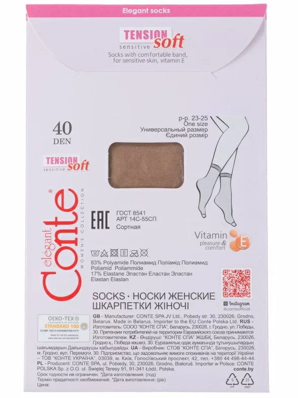 Производство бренда Conte расположено в Беларуси. Носки 14С-55СП/Tension soft 40Н сохраняют форму и цвет даже при регулярном использовании.