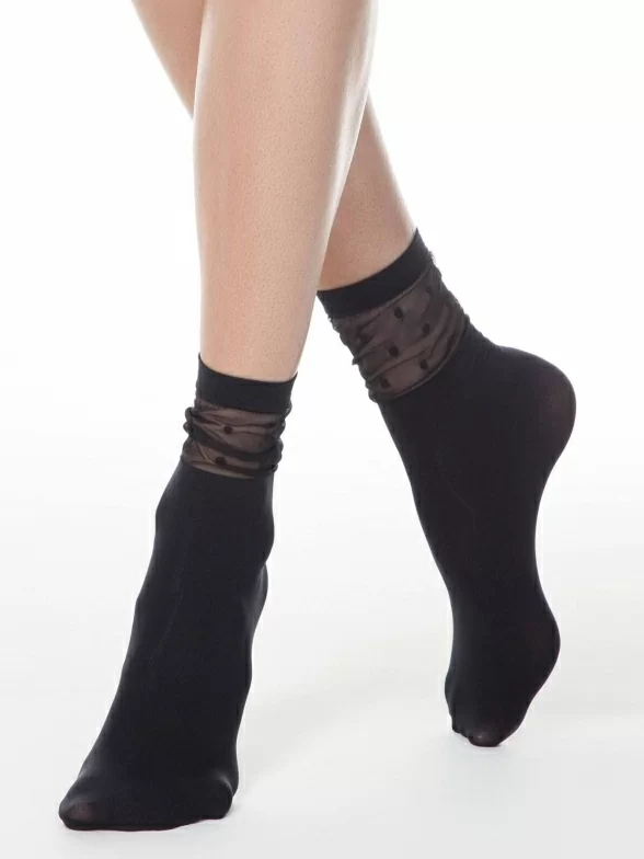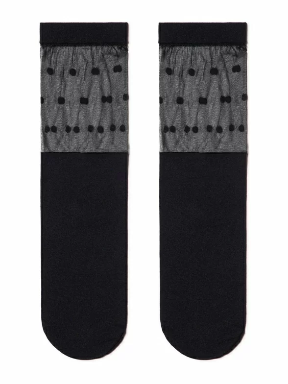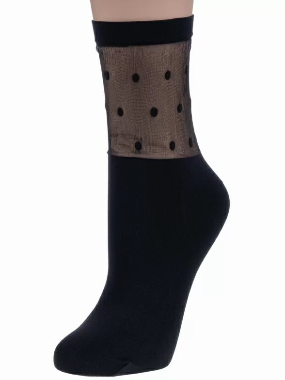 Женские однотонные носки с прозрачной вставкой в горох на паголенке.
