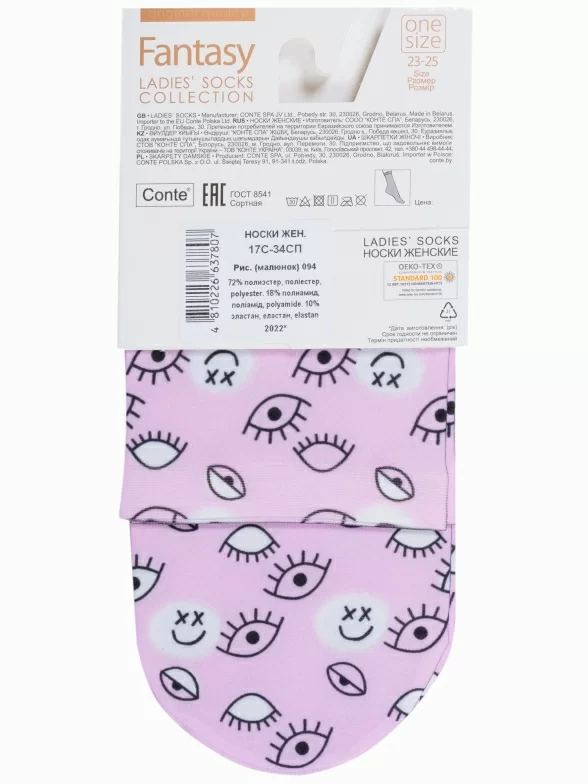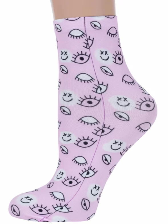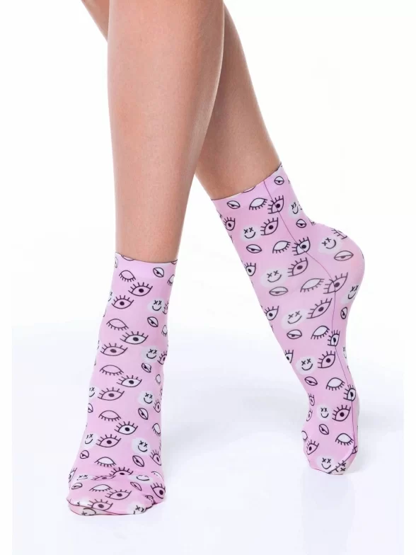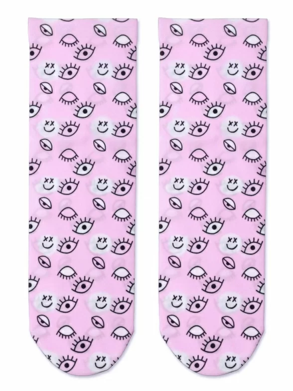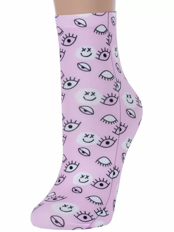 Капроновые фантазийные женские носки плотностью 70 den с принтом в виде изображений глаз и смайликов, нанесенных термопечатью.