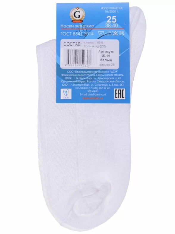 Летние укороченные женские носки, цвет белый, в сеточку, шов обычный (не бесшовные), принт (рисунок): с узором, однотонный, состав: 80% хлопок, 20% полиамид, арт. Ж-19. Производитель «ООО Производственная компания "ДСМ", Россия» под брендом «Grand line».