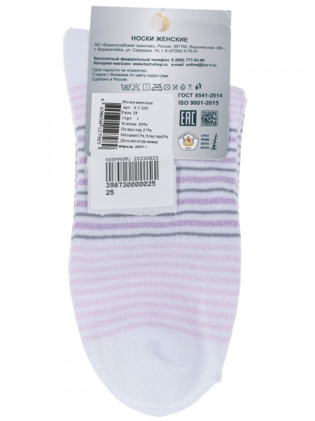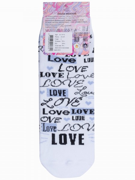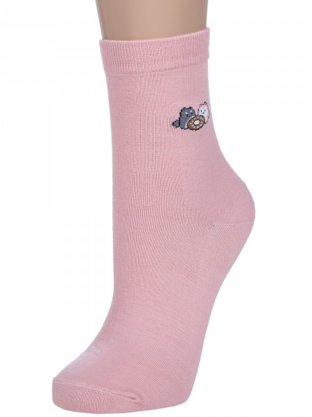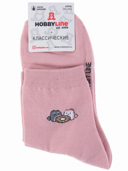 Круглогодичные укороченные женские носки, цвет розовый, с принтом, состав: 75% хлопок, 23% полиамид, 2% эластан, арт. Нжх334-5. Производитель «Китай, страна бренда - Россия» под брендом «Hobby line».