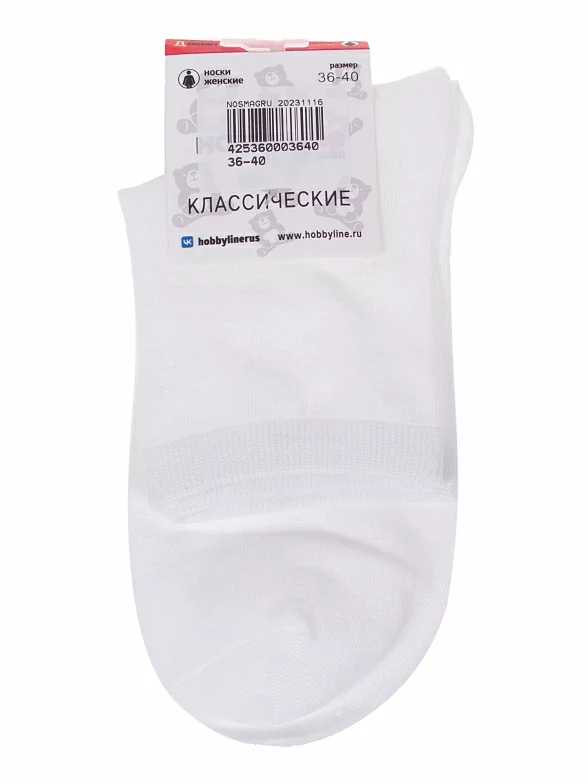 Круглогодичные укороченные женские носки, цвет белый, классические, состав: 75% хлопок, 23% полиамид, 2% эластан, арт. Нжх337. Производитель «Китай, страна бренда - Россия» под брендом «Hobby line».
